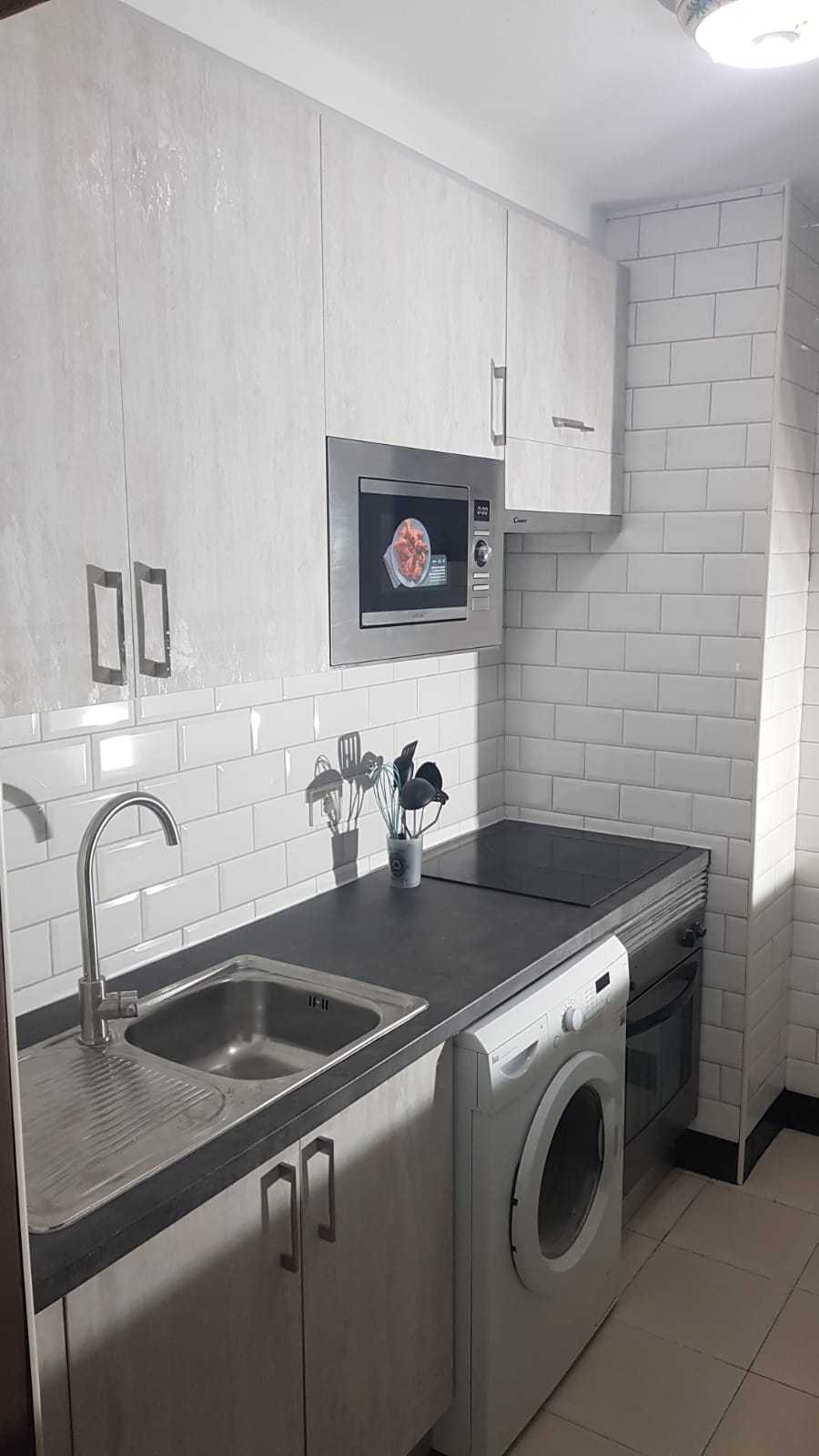 Kitchen: oven/hob, fridge, microwave, kettle, washing machine