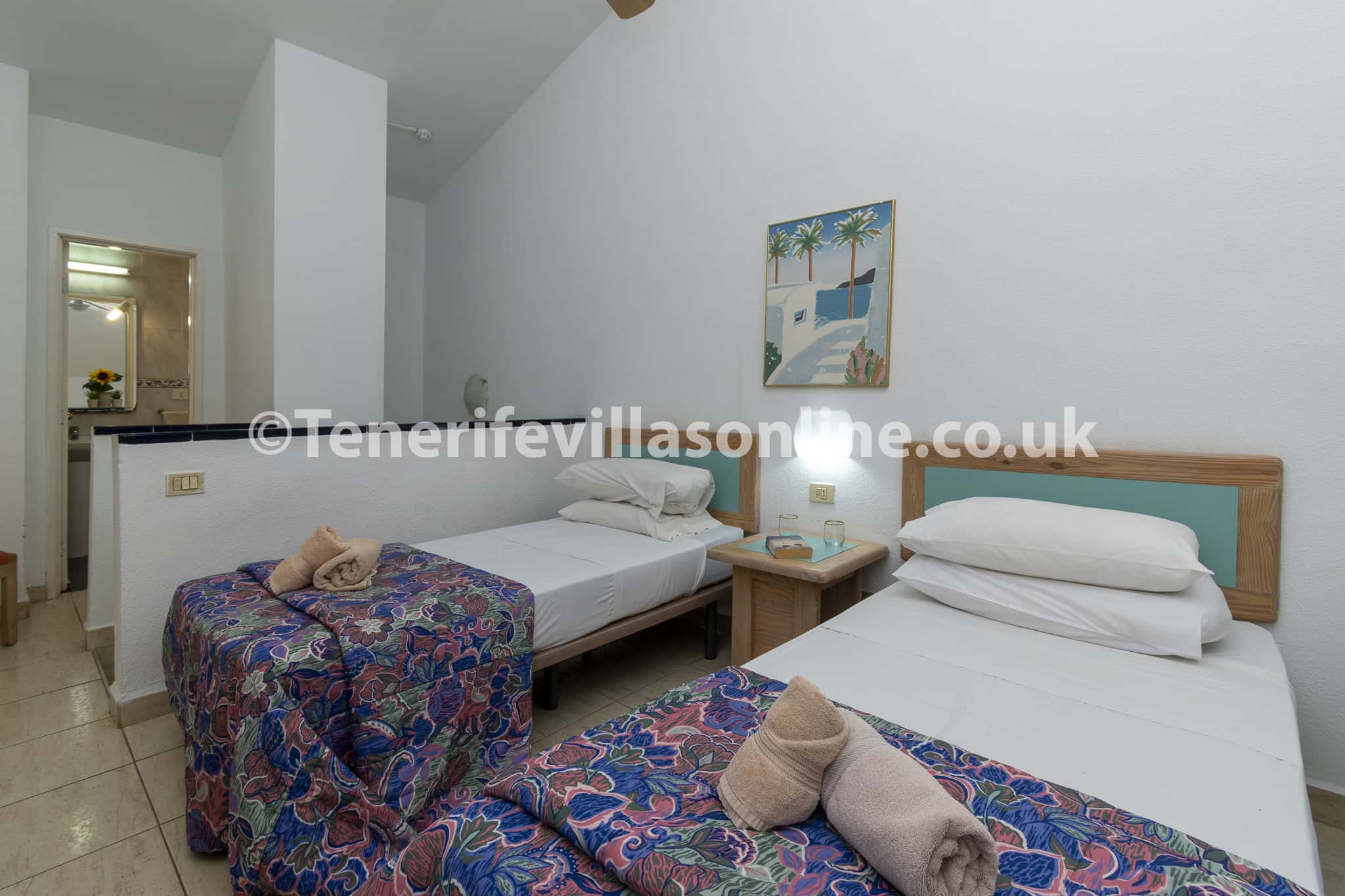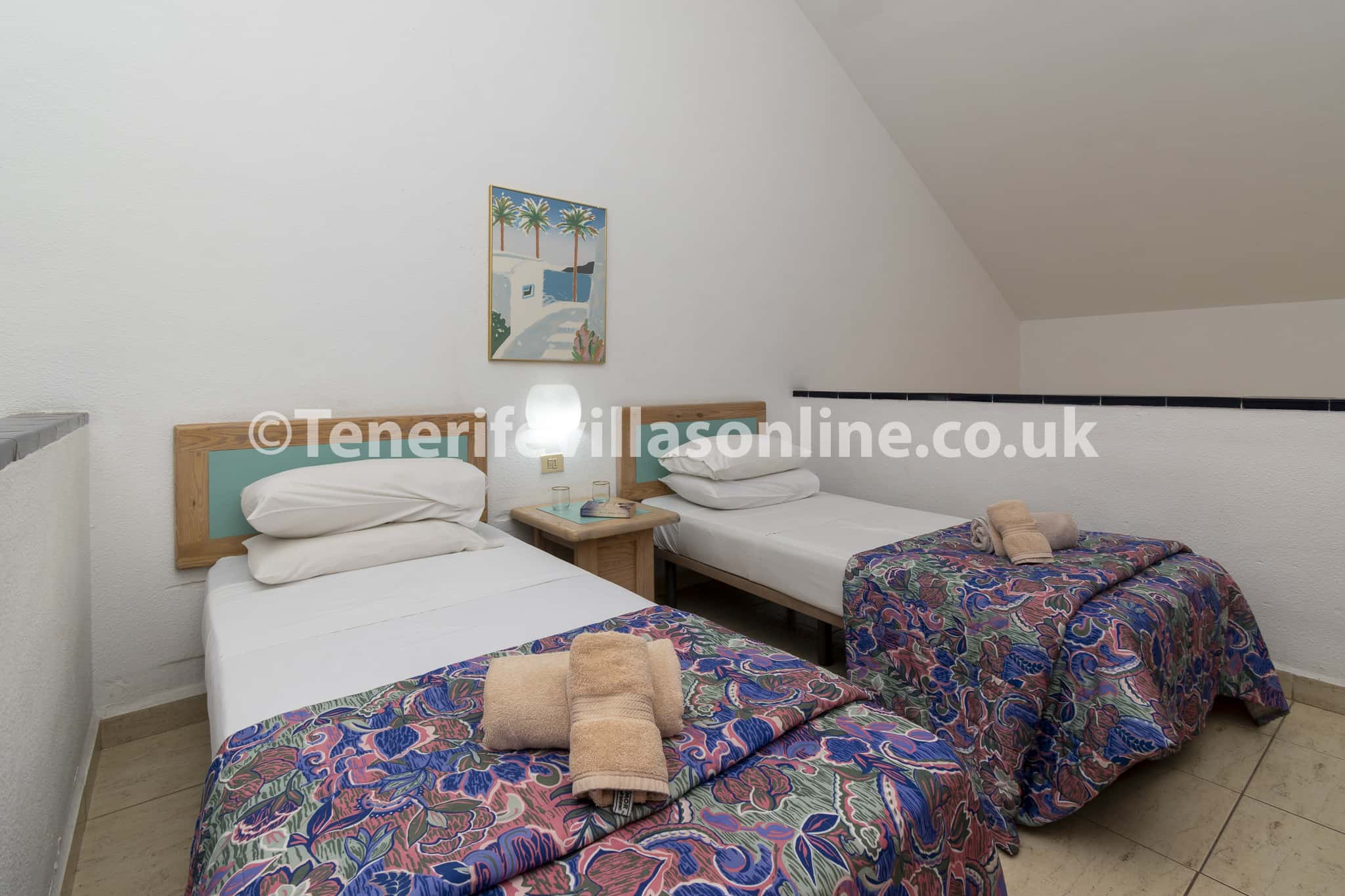 Bedroom: single bed (x2), fitted wardrobes, ceiling fan