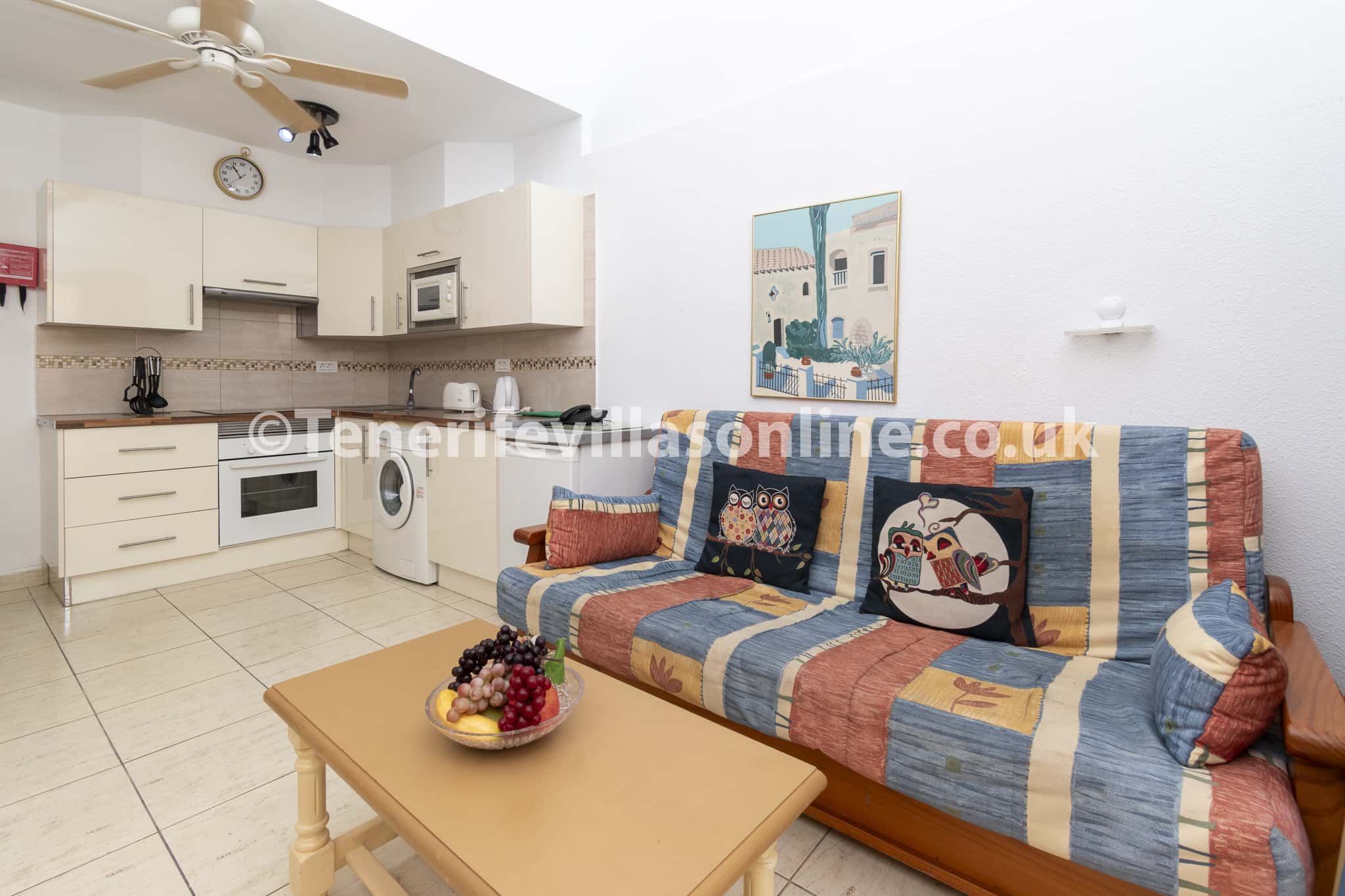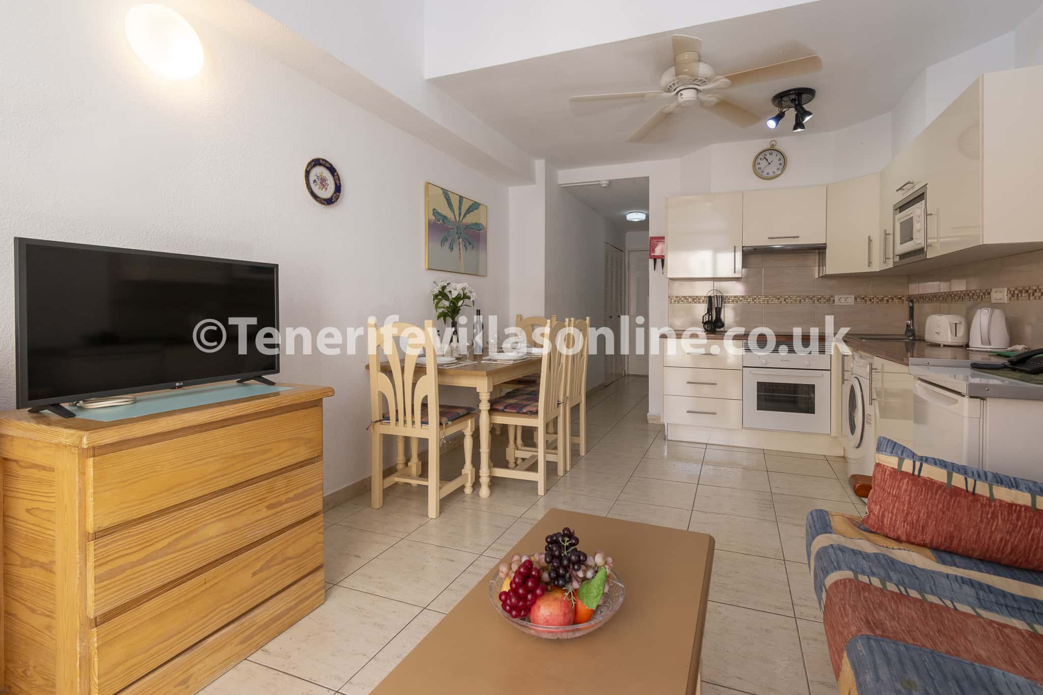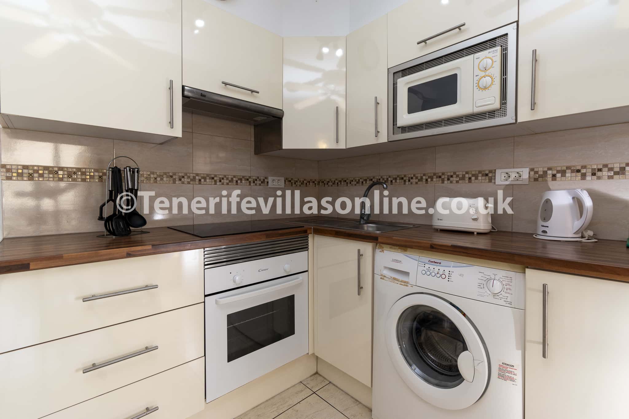 Kitchen: oven/hob, fridge/freezer, microwave, kettle, toaster, washing machine