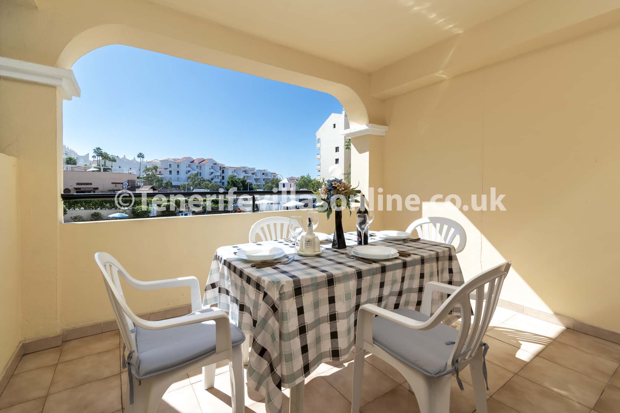 The apartment is located close to the centre of Los Cristianos and the sandy beach. Los Cristianos has been a very popular resort in Tenerife for many years. There are a selection of bars, restaurants, supermarkets, shops, banks etc all within a couple minutes walk from the apartment. Los Cristianos has a beautiful safe and clean beach, ideal for families with plenty of shops and amenities for entertainment. Tenerife south airport is only 15 minutes from the accommodation. Las Americas is a 5 minute drive away.