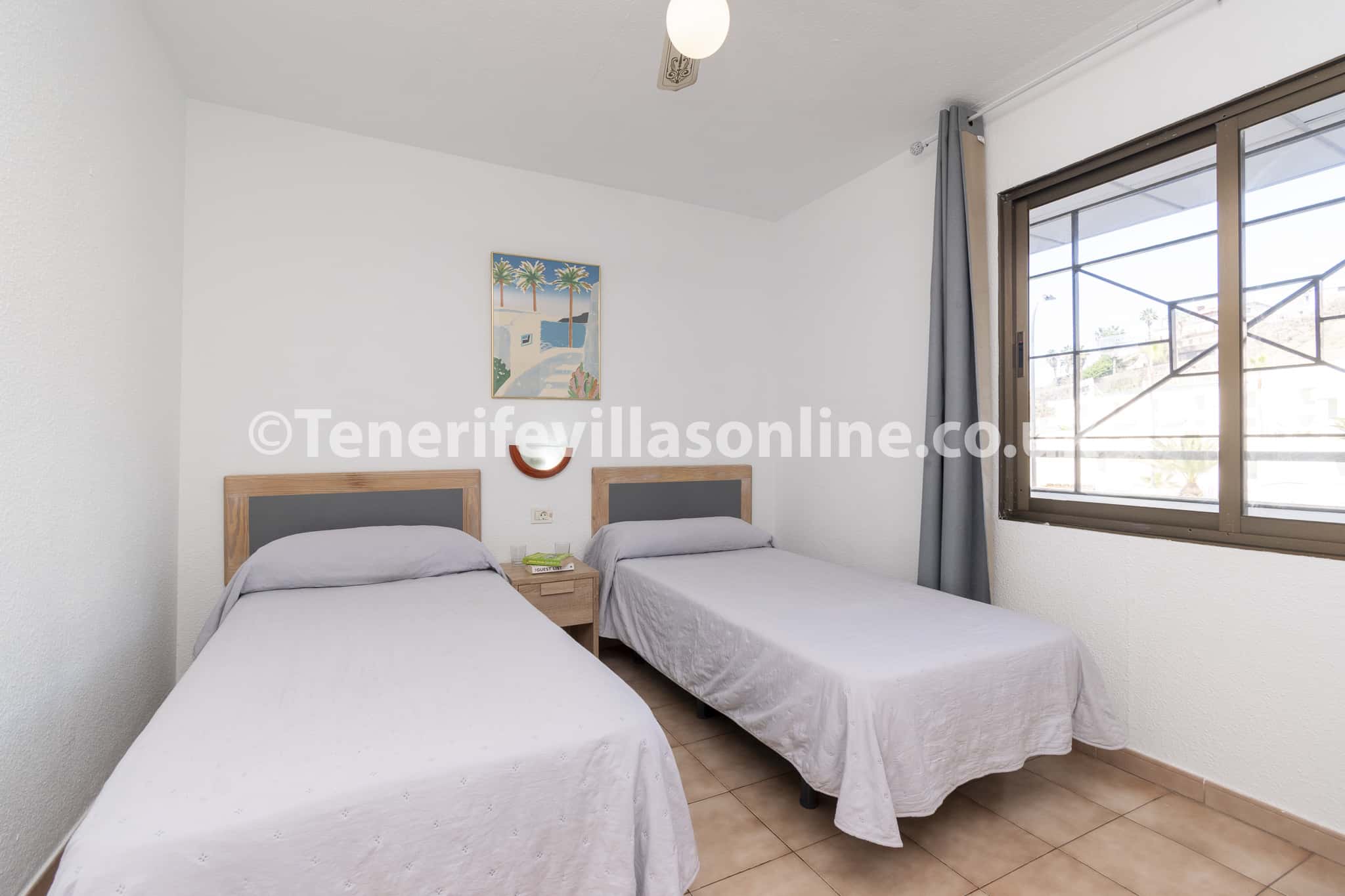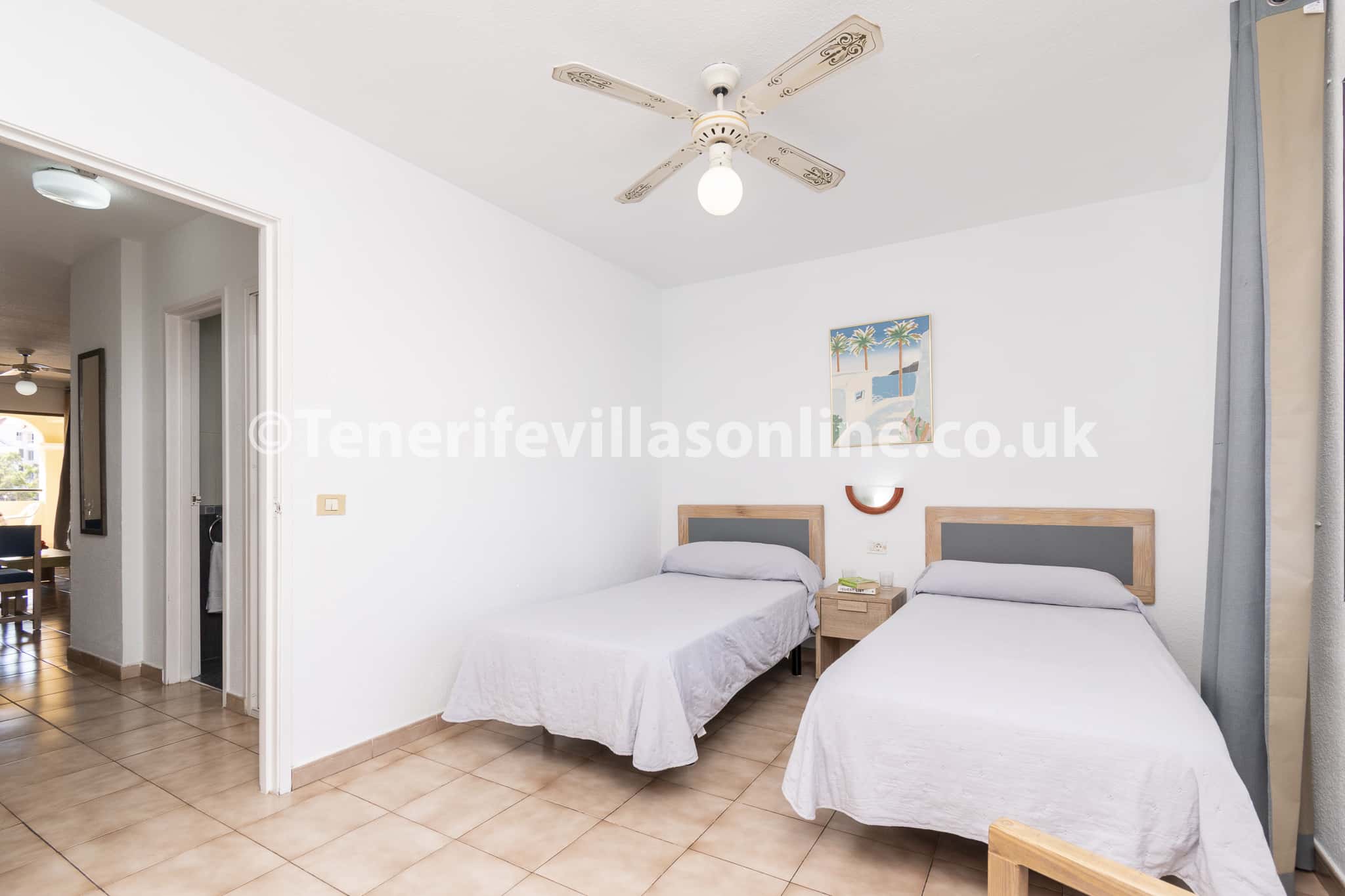 Bedroom: single bed (x2), fitted wardrobes, ceiling fan