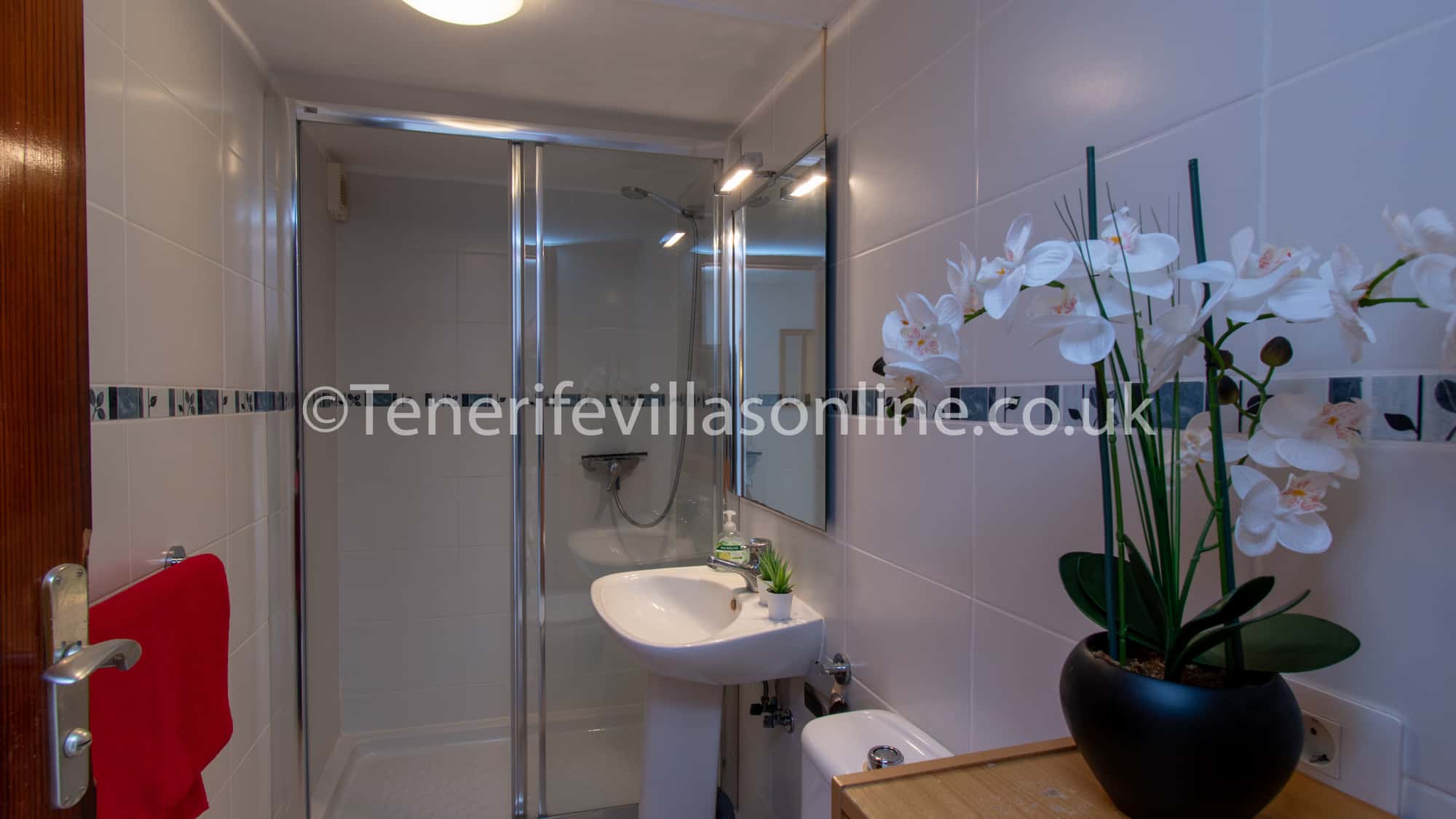 Bathroom: toilet, sink, walk in shower
