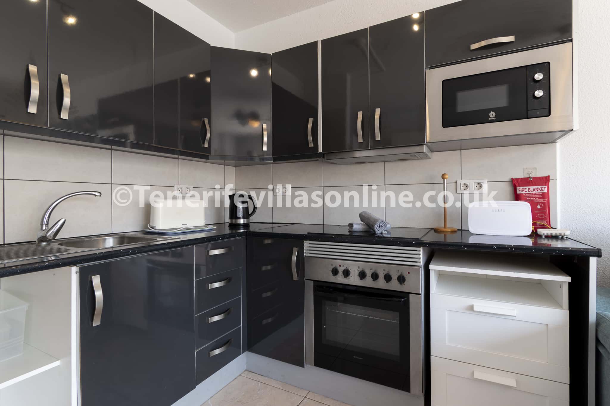 Kitchen: oven/hob, fridge/freezer, microwave, kettle, toaster, washing machine