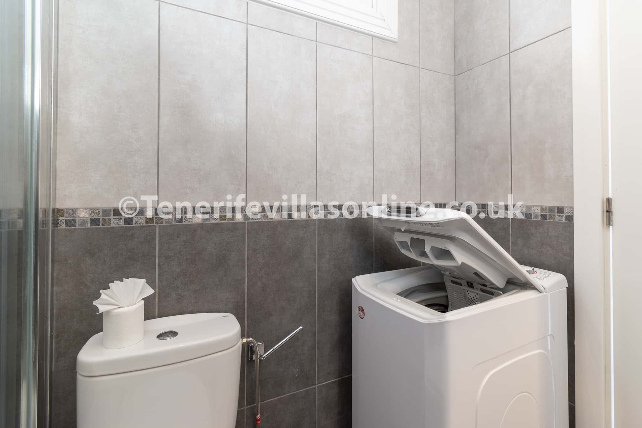 Bathroom: toilet, sink, shower cubicle, washing machine