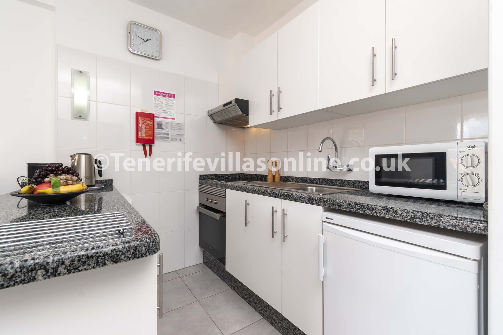 Kitchen: oven/hob, fridge/freezer, microwave, kettle, toaster