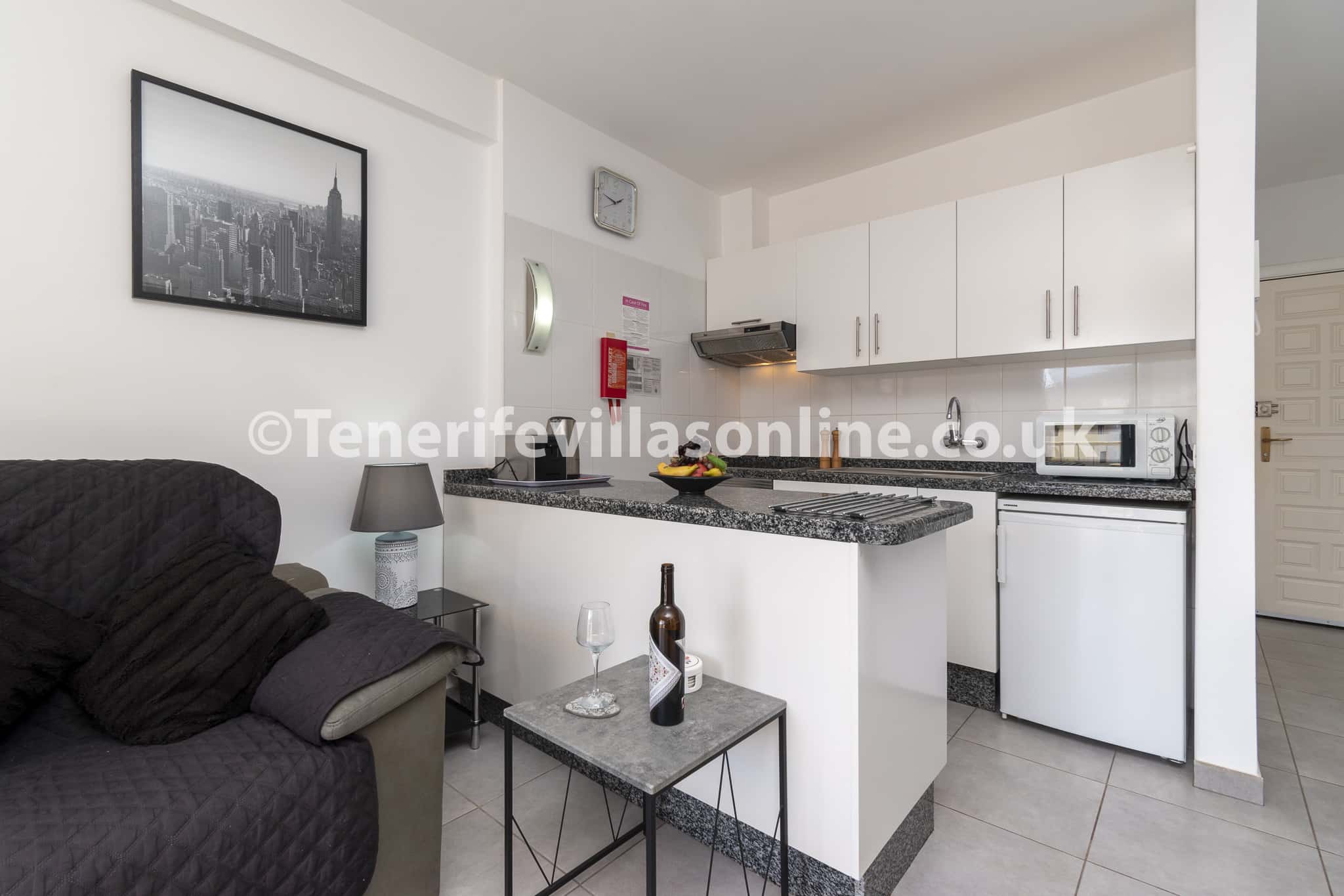 Recently refurbished, the owner has embellished the apartment with a stylish décor! Fully equipped throughout, contains all essentials such as living room, kitchen, bedroom, bathroom and a balcony. Relax in the warmth outside on the balcony and appreciate the panoramic mountains views in front of you! The lounge includes UK channels plus TV channels from other countries and free WiFi for you to make full use of.
