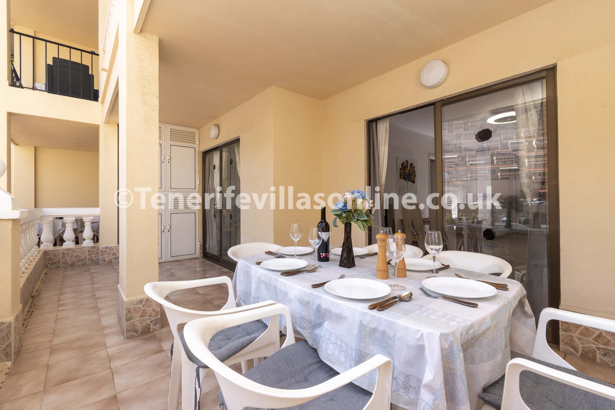 The apartment is located close to the centre of Los Cristianos and the sandy beach. Los Cristianos has been a very popular resort in Tenerife for many years. There are a selection of bars, restaurants, supermarkets, shops, banks etc all within a couple minutes walk from the apartment. Los Cristianos has a beautiful safe and clean beach, ideal for families with plenty of shops and amenities for entertainment. Tenerife south airport is only 15 minutes from the accommodation. Las Americas is a 5 minute drive away.