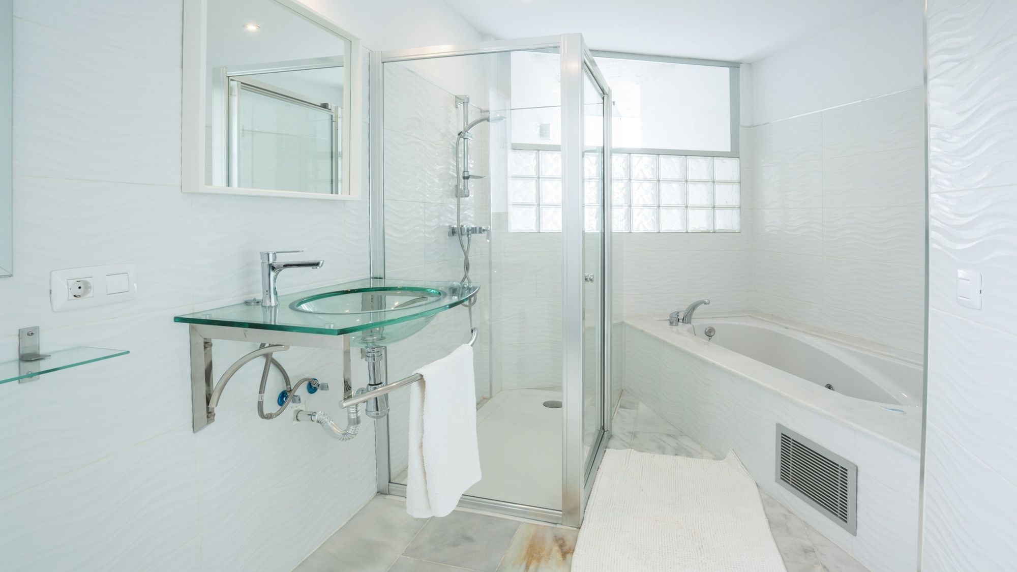 En suite (bedroom 1): toilet, sink, shower cubicle, bath