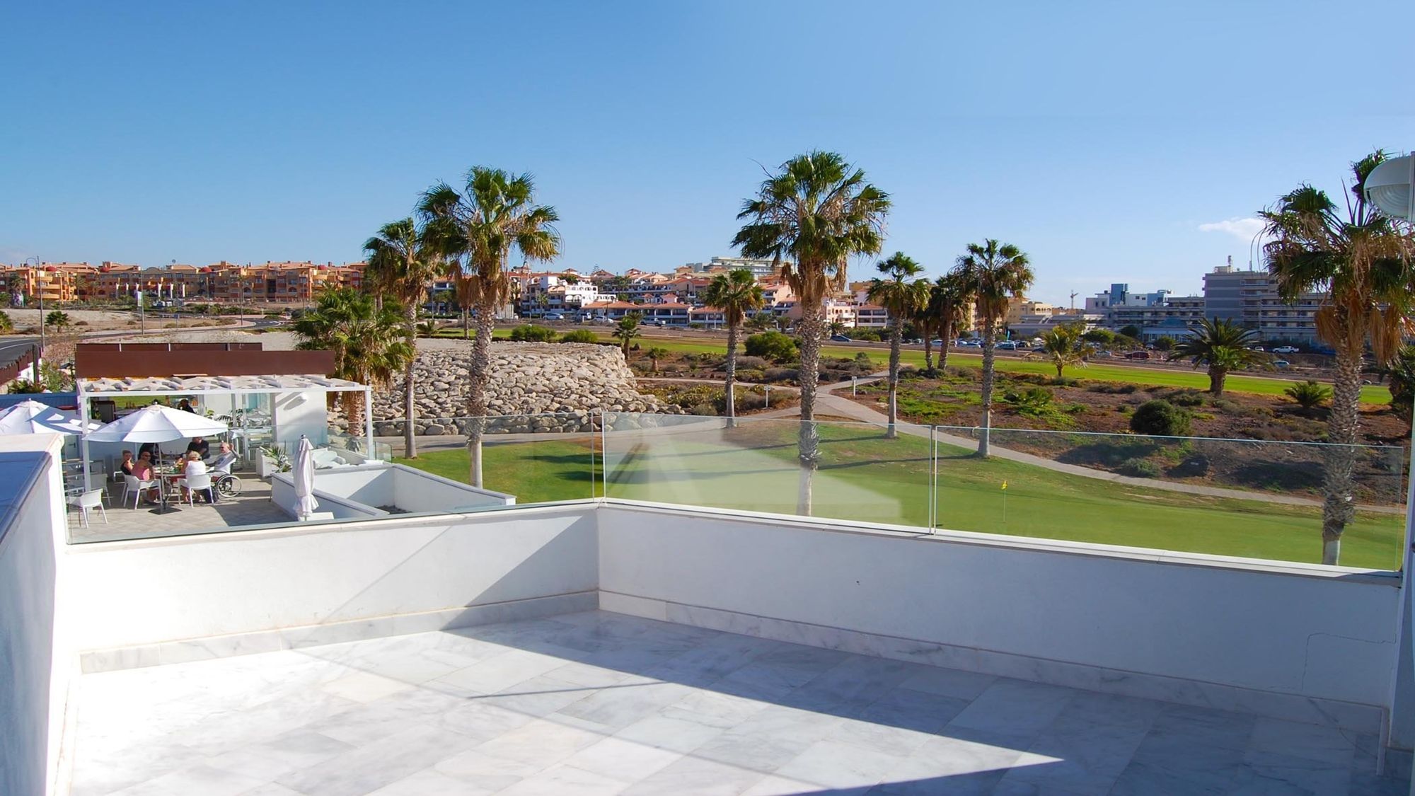 Tenerife Villas Online offer you this new development located in Amarilla Golf adjacent to the golf course. The complex boasts stunning views over the lush green golf course down to the marina and out to sea. There is a large heated infinity pool with several terraces all with picturesque views from different angles. The complex provides hotel style facilities including an on-site manager, laundry service and a restaurant/ bar that serves food all day. Perfect for you to indulge in the surrounding scenery while enjoying good food and sipping on a cocktail.