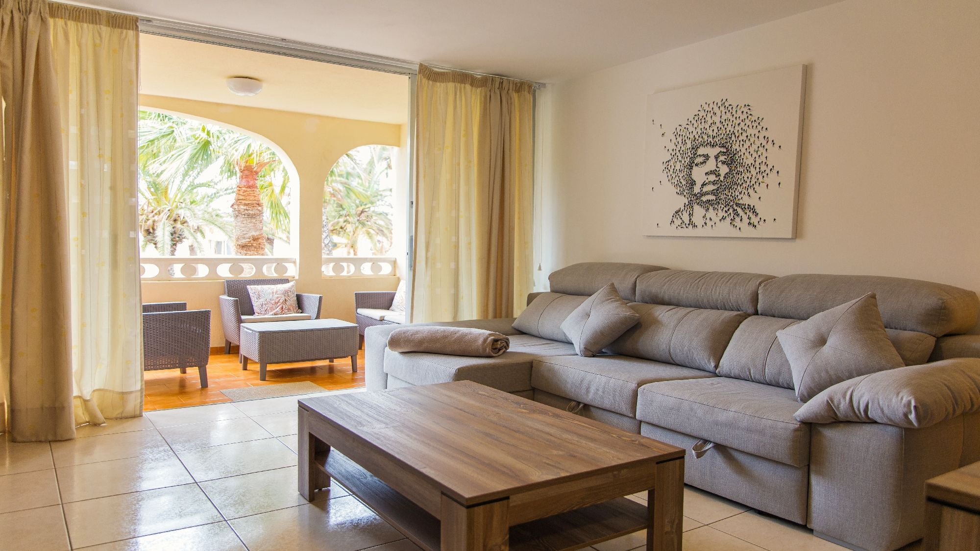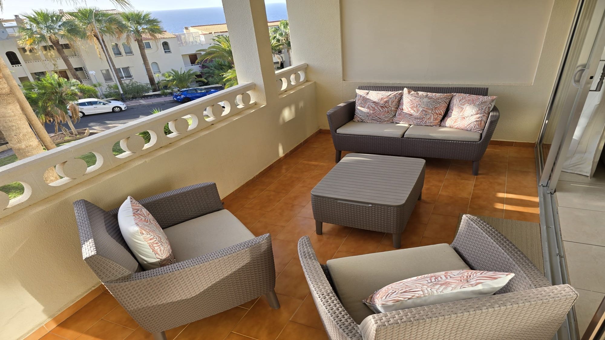 Guests have access to the Sueno Azul Club communal swimming pool, which is a peaceful setting with a large pool terrace situated in sea front location! Only meters from the sea. Includes sun loungers and “Beach Cabana” style beds.