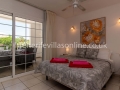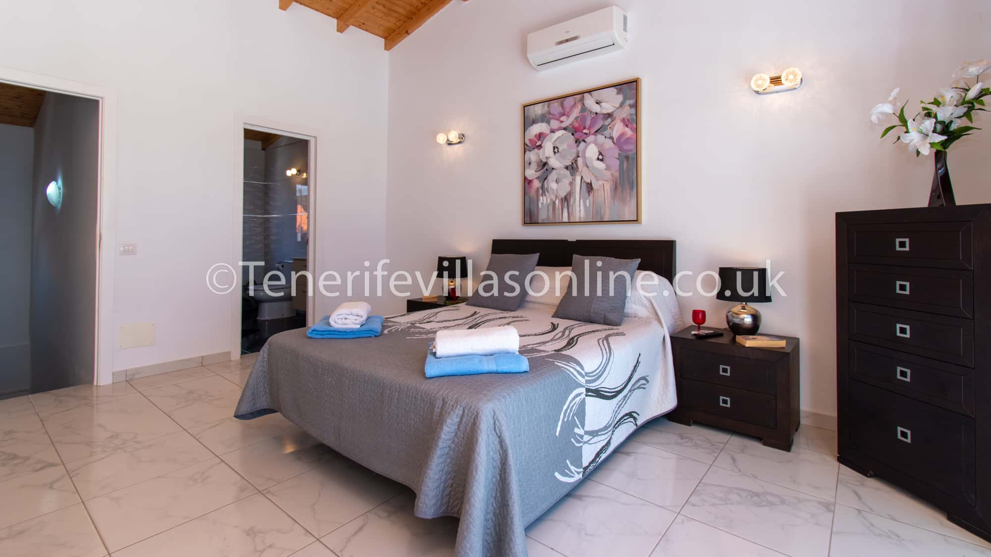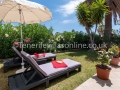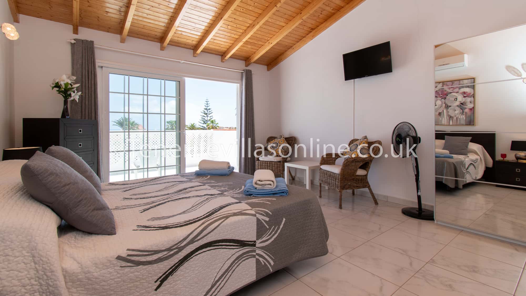 Situated on 2 levels, the large living area is complete with vaulted ceilings, and is a comfortable place to unwind and make use of the 48-inch TV with all international channels, also includes an adjoining dining area and patio doors leading to the garden. A fully equipped kitchen is included for cooking up a feast for the whole group. Bedroom 1 is particularly special, holds it’s own private balcony for an outdoor lifestyle. All rooms throughout are very spacious and both living area and bedroom 1 are fitted with air conditioning.