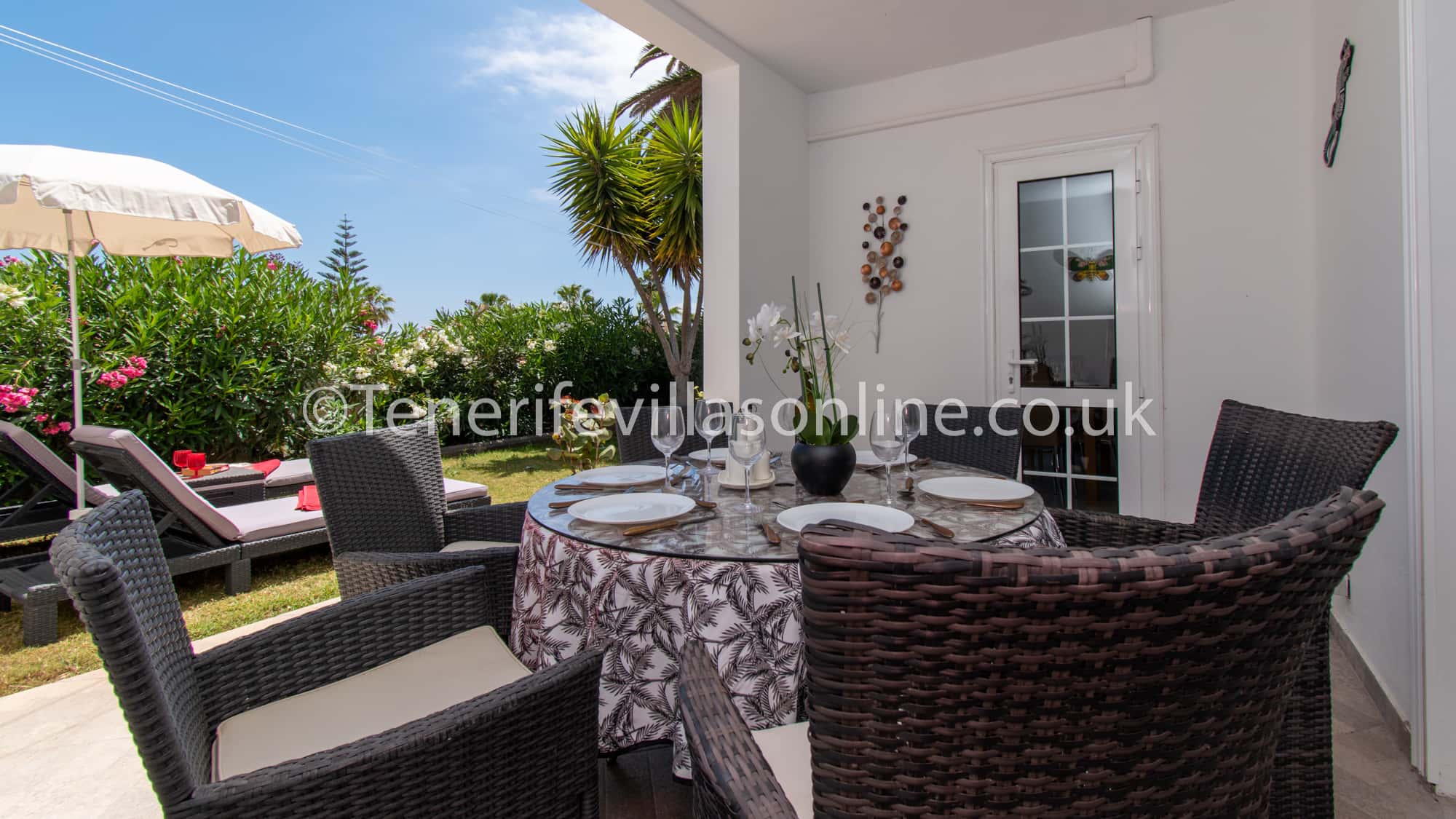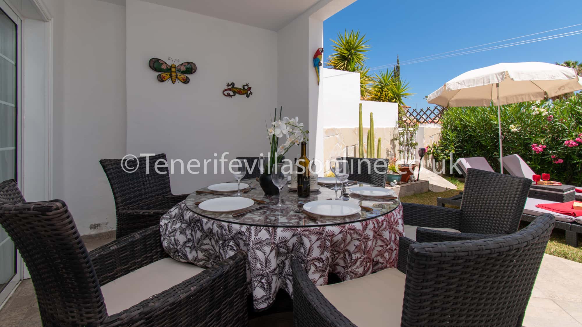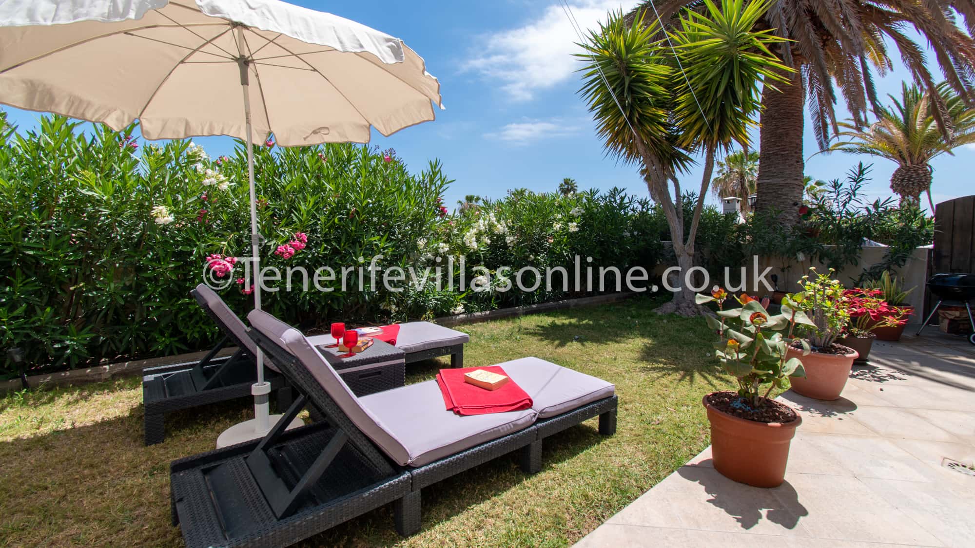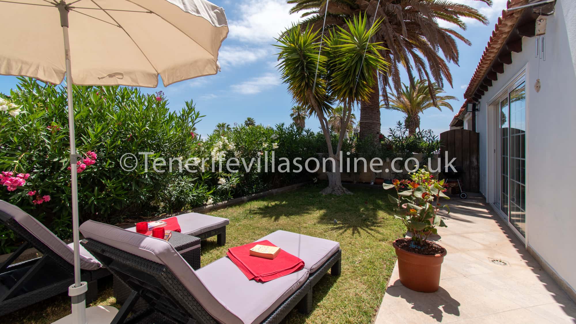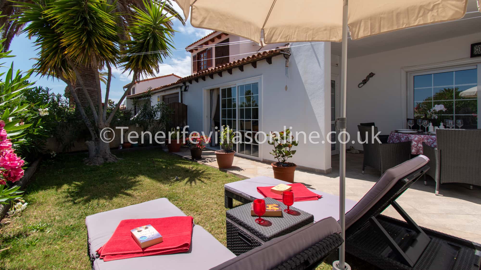 Escape to this traditional style holiday rental, a spacious 3 bedroom villa that includes access to a communal heated pool and all amenities you could ask for. Located in the beautiful Fairway Village complex in Golf Del Sur, Tenerife. The lush lawn in the garden provides the perfect setting for sunbathing in nature’s tranquillity and enjoying alfresco meals with family and friends.