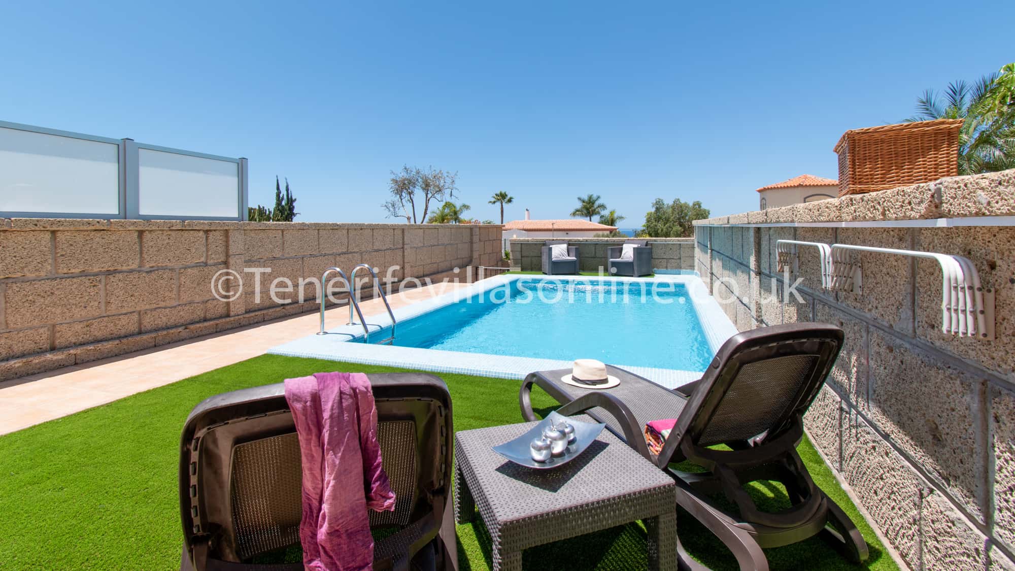 This villa is situated in the most exclusive resort area in Tenerife, Playa Del Duque (Costa Adeje). The resort holds an abundance of 5 star hotels, villas and developments, it is known to locals as the more luxurious part of Tenerife. The nearby Duke Shopping Centre is located 700 meters from the property, here you will find all amenities including many bars, restaurants and supermarkets. A further 700 meters will take you to Playa Del Duque beach which is one of the most prestigious beaches on the island. The accommodation has all amenities nearby therefore car hire is not required.