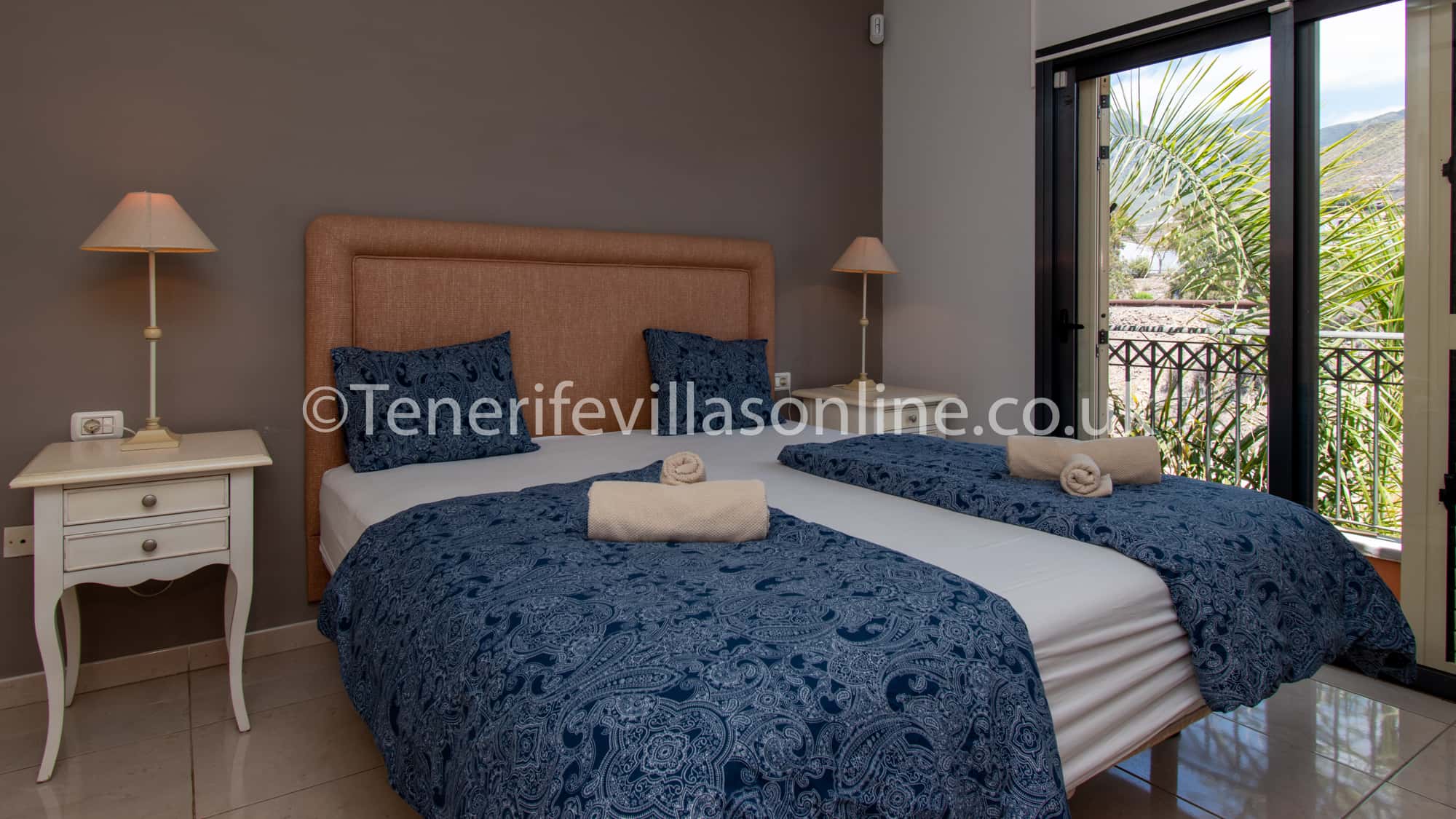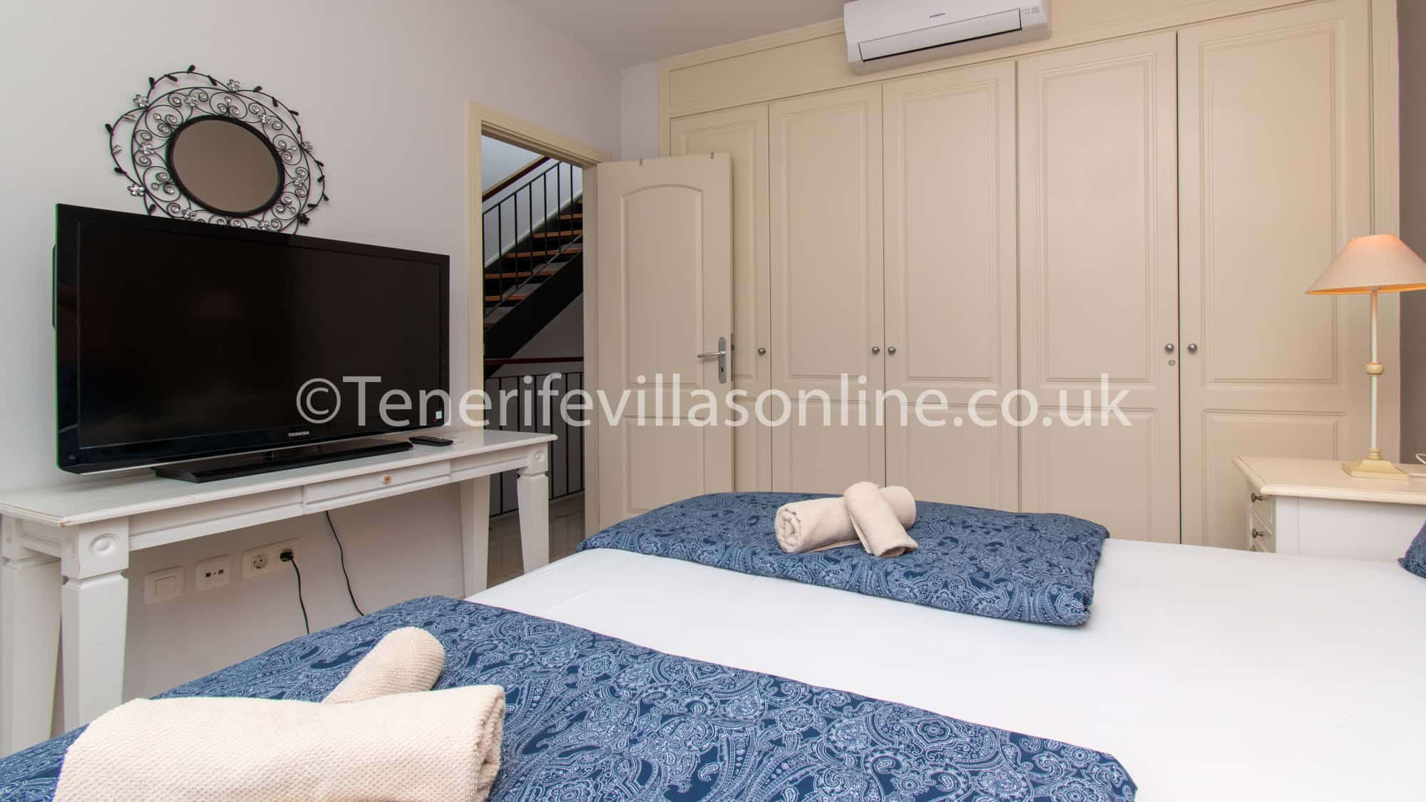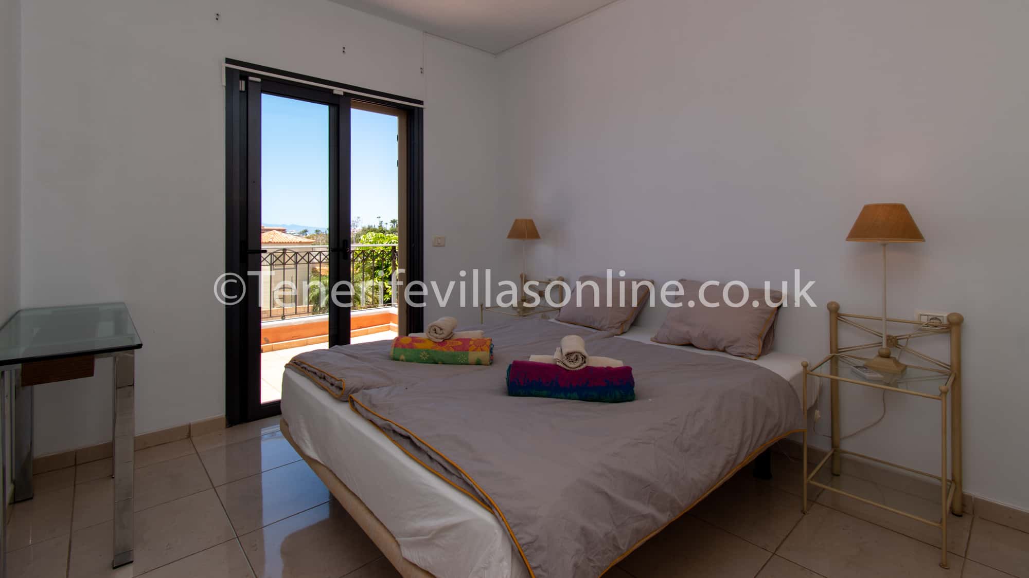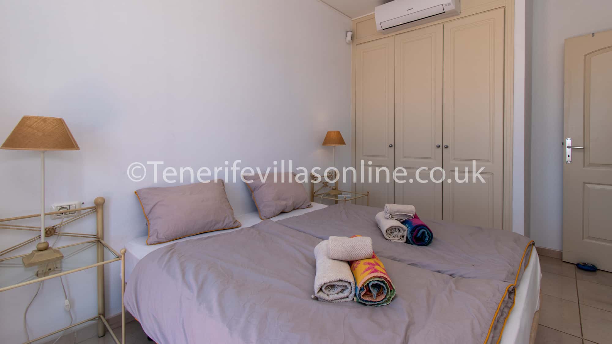 Bedroom 2: king size bed, wardrobe space, air conditioning, patio doors to private balcony
