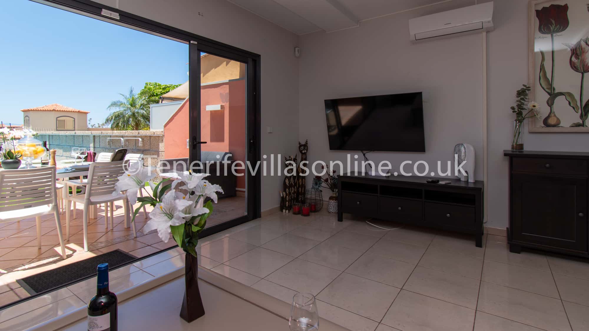 Lounge: L shaped sofa for 8, 40 inch flat screen TV, air conditioning, patio doors to terrace