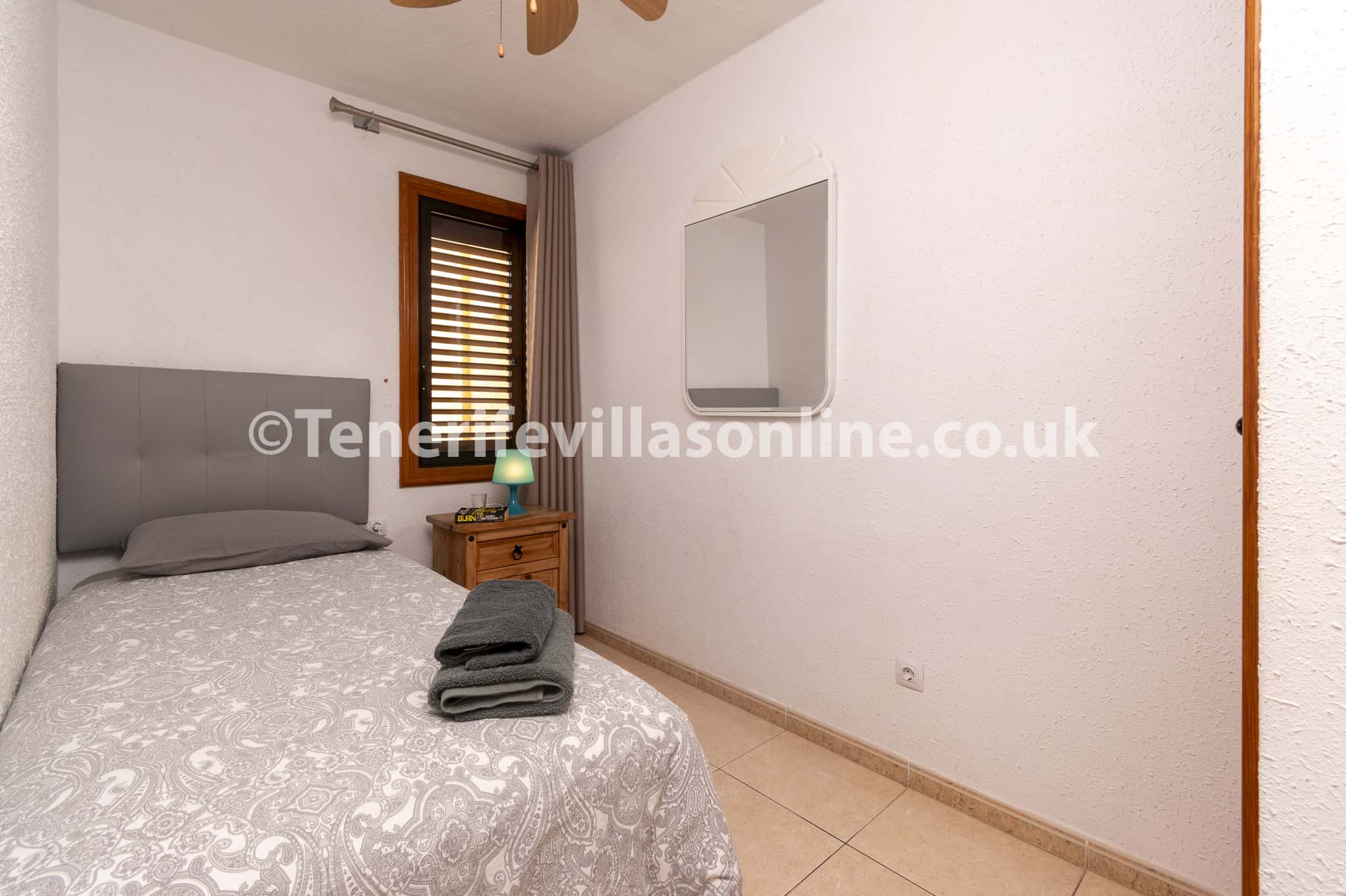Bedroom 2: single bed, fitted wardrobes, ceiling fan