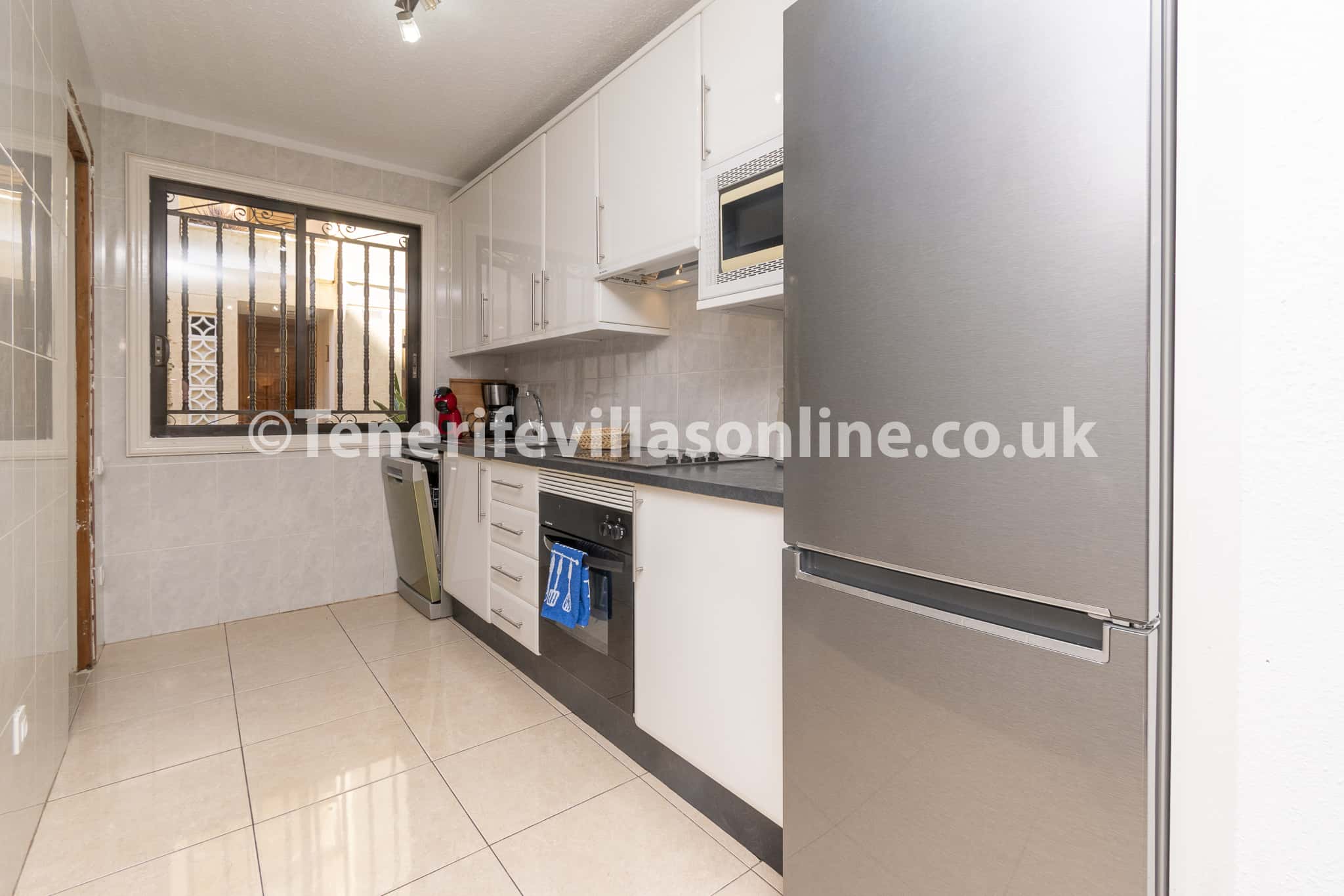 Kitchen: oven/hob, fridge/freezer, coffee machine, microwave, kettle, toaster, dishwasher, washing machine