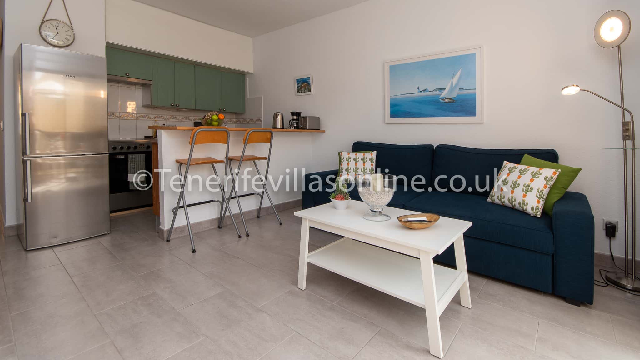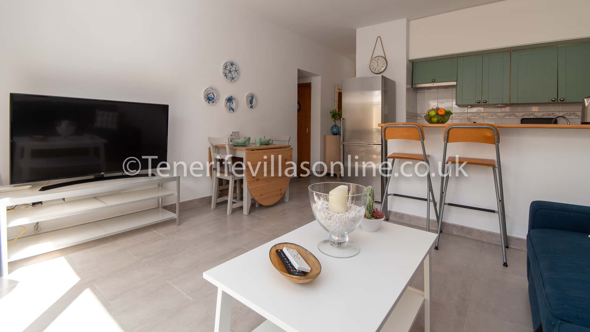 Modern, intimate and stylish, this 2 bedroom apartment Tenerife is perfect for your next holiday. Escape from the noise and take refuge in this 2 bedroom oasis of comfort. 1 bedroom includes its own private balcony with pool view, 1 bathroom, a living room with a television sporting UK channels and patio doors to separate balcony, ceiling fans in all rooms and a kitchen with breakfast bar for 2 for that sleek, contemporary feel, if this apartments doesn’t scream relaxation, we don’t know what does. Retire to the living room to enjoy an evening of televised programming, take a walk onto the balcony after a relaxing nap to enjoy the picturesque view of the pool area or create a dining experience from our spacious, fully-stocked kitchen to our breakfast bar. For your next holiday, don’t miss out on this hidden gem.