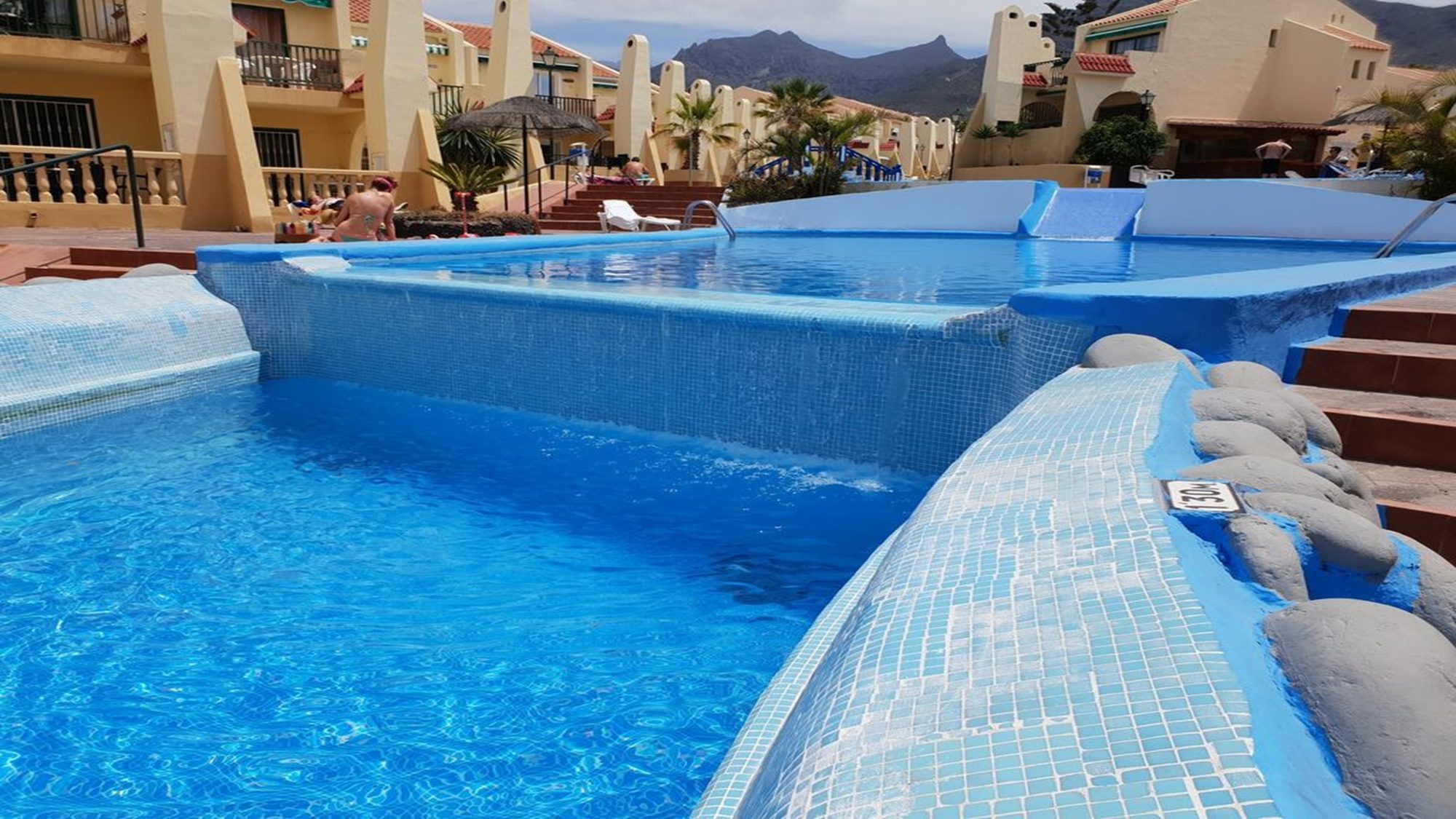 The Mare Verde Costa Adeje Complex promises the best holiday experience. With the beach only 350 meters away and access to 6 different swimming pools on the property, one of which is heated, you have the freedom to choose from (also includes gated pool). Our swimming pool system yields a unique experience as our swimming pools are interconnected throughout the complex like a river by waterfalls, streams and children slides. Speaking of children, there is a separate pool that they have all to themselves allowing them to have fun with their friends and for the adults to swim uninterrupted. The complex also features a pool table and mini-market allowing you to purchase food and dine at your leisure. Speaking of dining, staying here you will be able to kick back and enjoy a drink or meal in our bar and restaurant, accentuated by a warm and intimate setting. Simply put, the complex has everything you need for a relaxing stay in, to a water bound adventure. These features and more are available to you and only serve to enhance your stay at the Mare Verde Tenerife Complex.