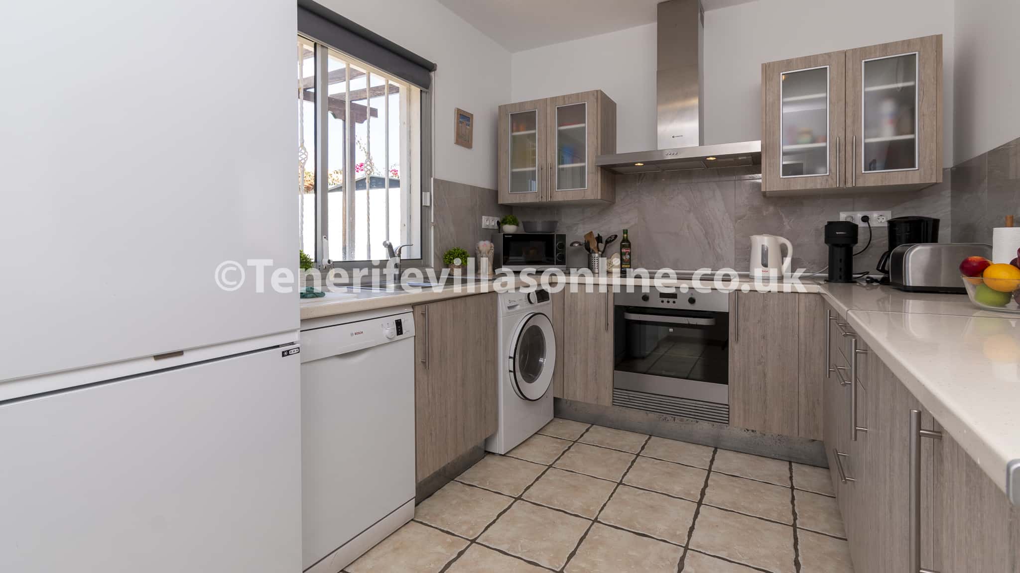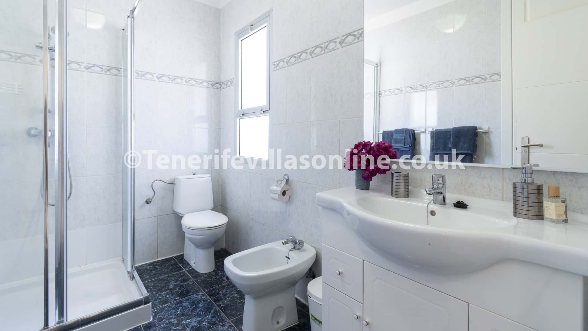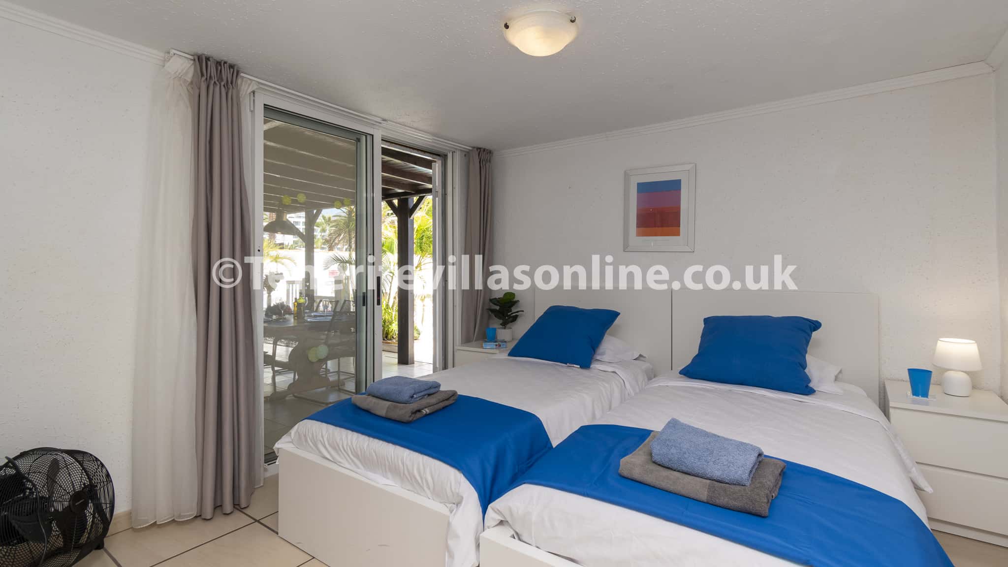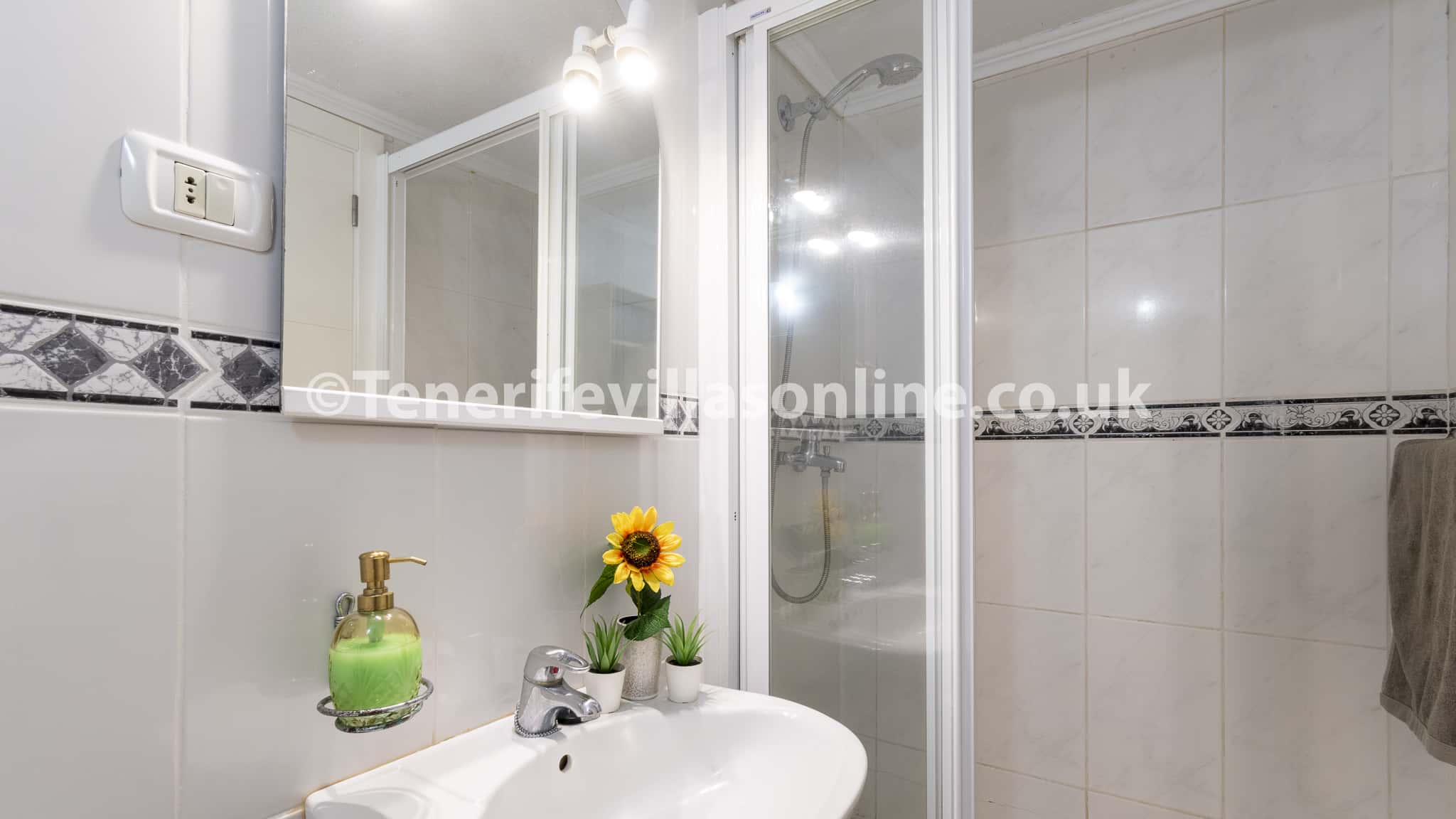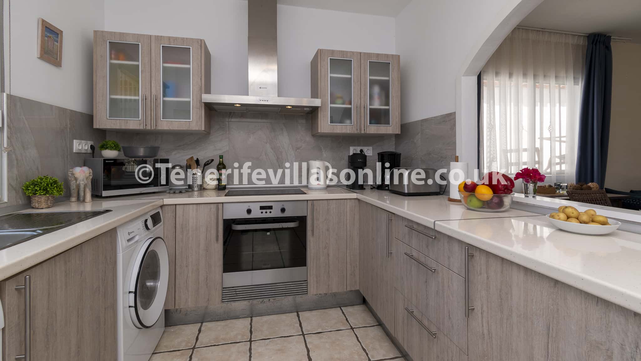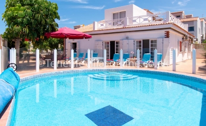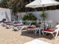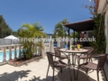 The interior includes a spacious open plan living and dining area with patio doors leading out to the terrace. Kick back and chill on the comfortable corner suite sofa and watch your favourite TV shows including UK channels. Our kitchen is fully equipped including modern appliances ready for home cooked meals. The villa holds 4 bedrooms where guests can sink into comfort and a total of 4 bathrooms, which equals a bathroom per bedroom.