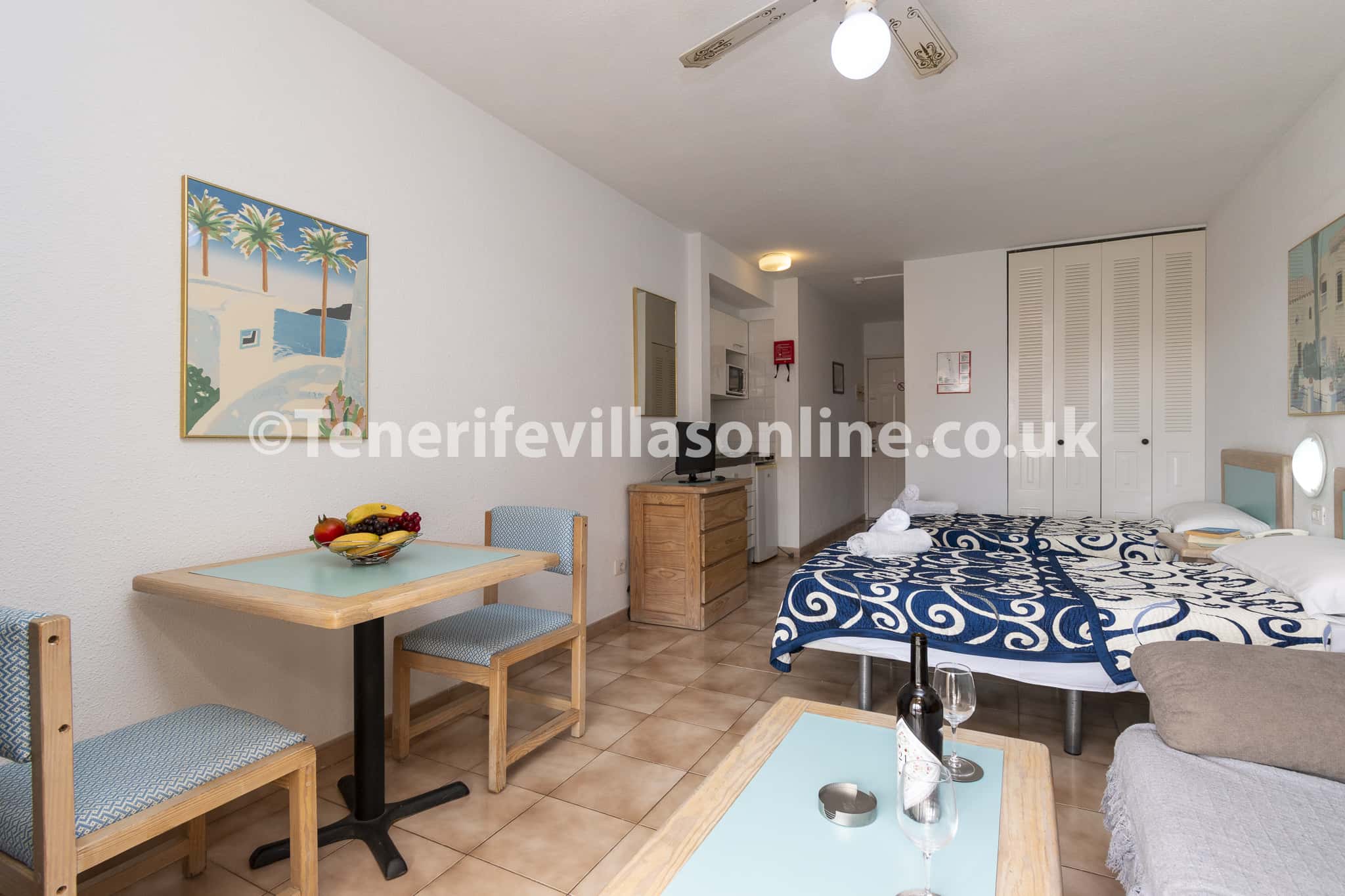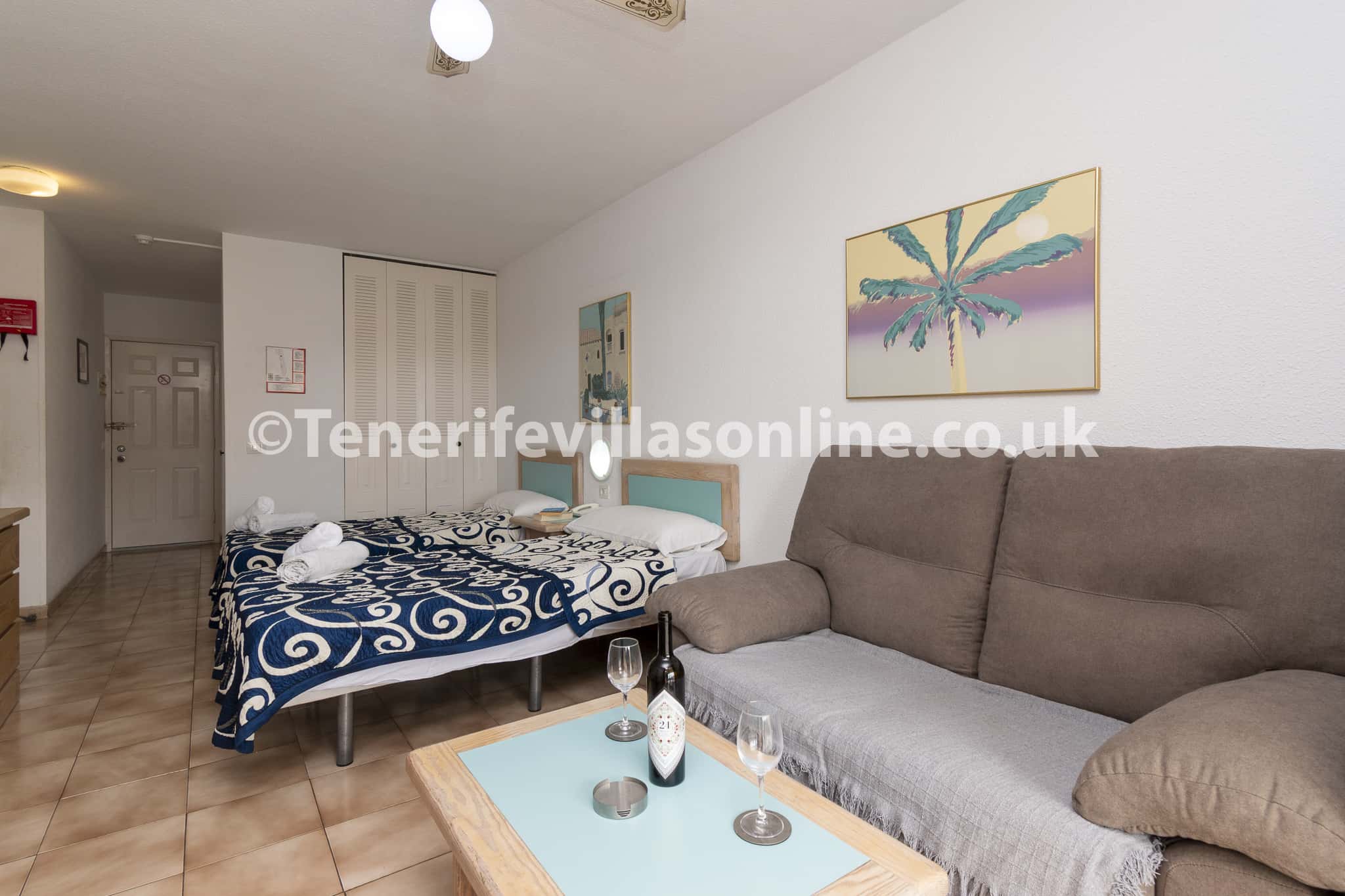 The apartment is located close to the centre of Los Cristianos and the sandy beach. Los Cristianos has been a very popular resort in Tenerife for many years. There are a selection of bars, restaurants, supermarkets, shops, banks etc all within a couple minutes walk from the apartment. Los Cristianos has a beautiful safe and clean beach, ideal for families with plenty of shops and amenities for entertainment. Tenerife south airport is only 15 minutes from the accommodation. Las Americas is a 5 minute drive away.