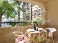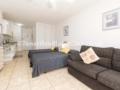 Experience comfort in the open plan living space! Complete with a kitchen, twin beds, a cosy sofa for unwinding, a TV with UK terrestrial channels and a private spacious balcony with a swimming pool view – ideal for al fresco dining. A phone in the room is available connecting guests directly to reception. This apartment includes free WiFi and a safe.