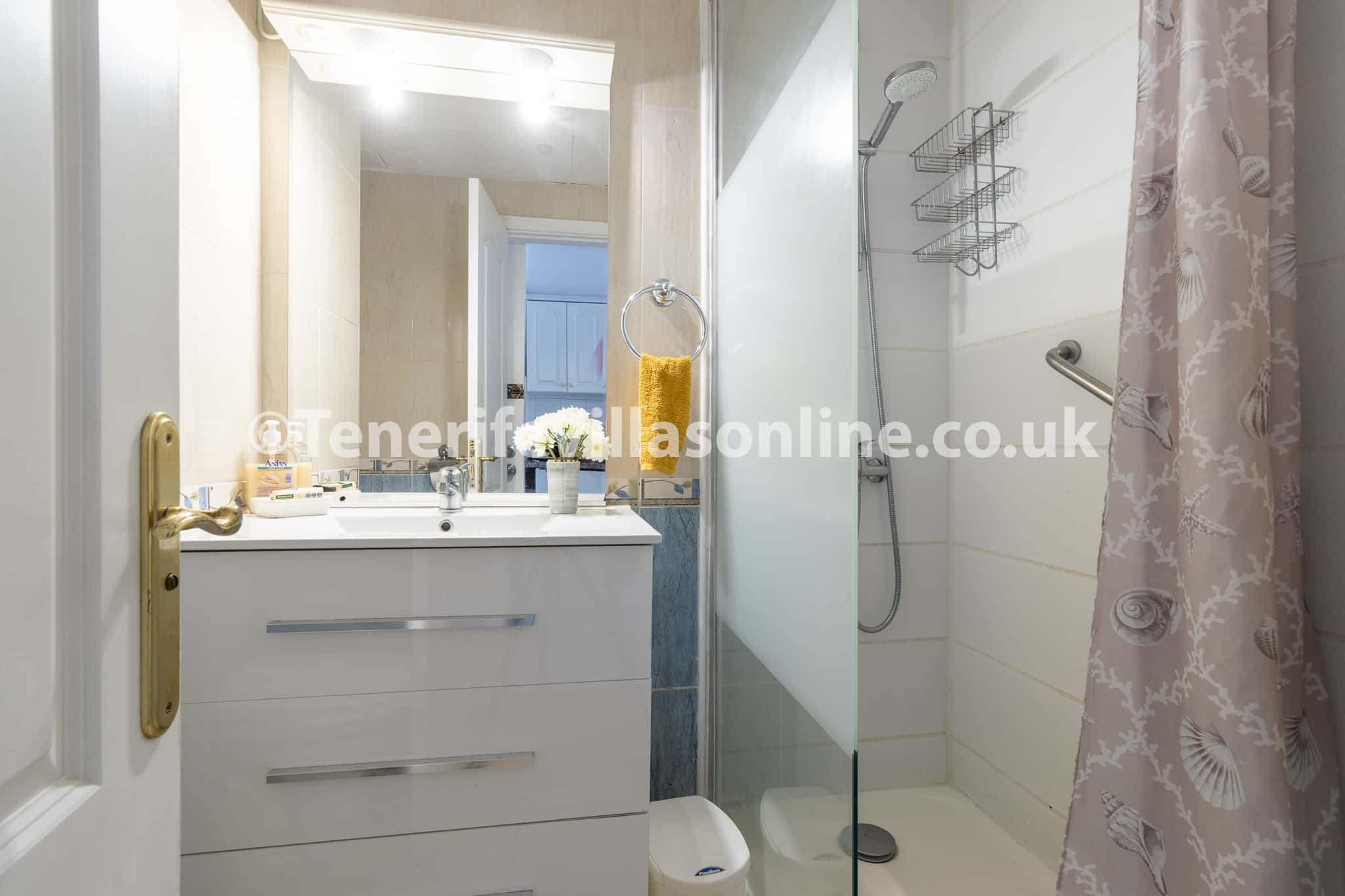 Bathroom: toilet, sink, shower cubicle