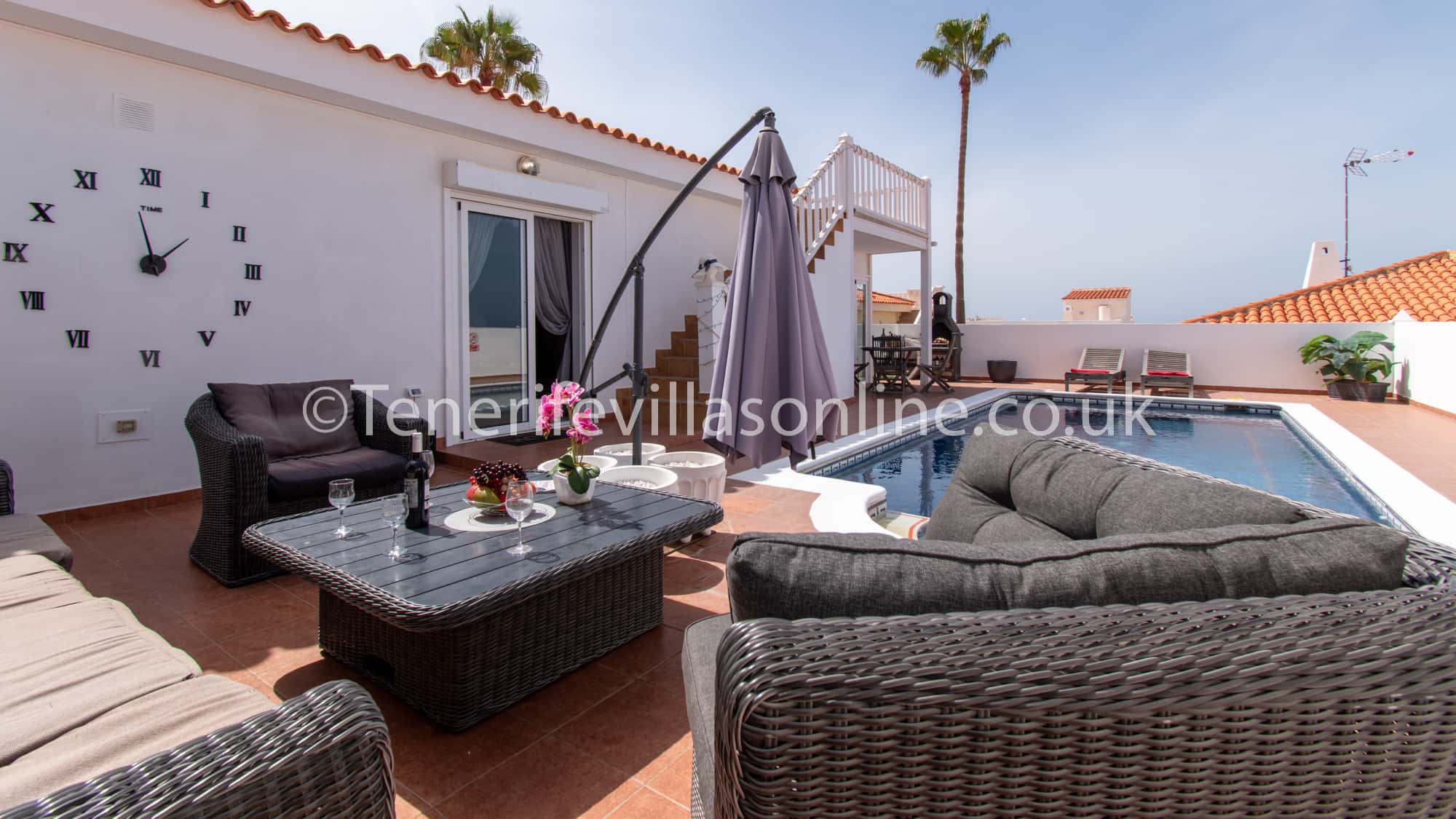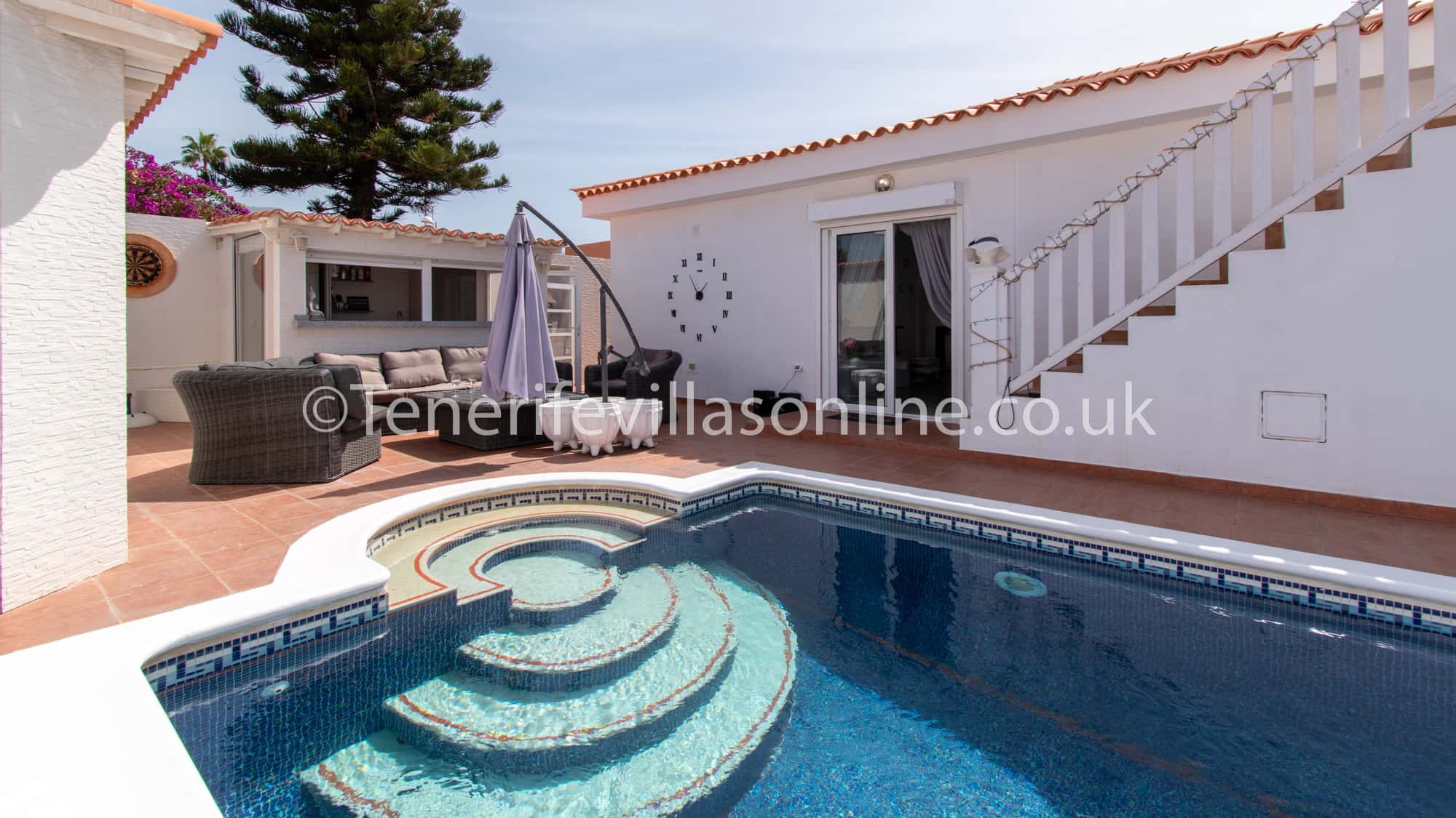 Enjoy a complimentary stay at this beautiful villa in Callao Salvaje, Tenerife. Situated in a central location only 200 meters from all amenities. Some of the main highlights of this property are 4 bedrooms (bedroom 4 is small and located in a separate building), 2 bathrooms, roof terrace with sea views and pool terrace with private heated pool and adjacent bar area with fridge! This villa offers comfort, peacefulness and is a great base for all of those who want to enjoy a relaxing holiday in Tenerife.