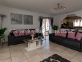 Lounge: 3 seater sofas (x2), 40 inch flat screen smart TV, fan