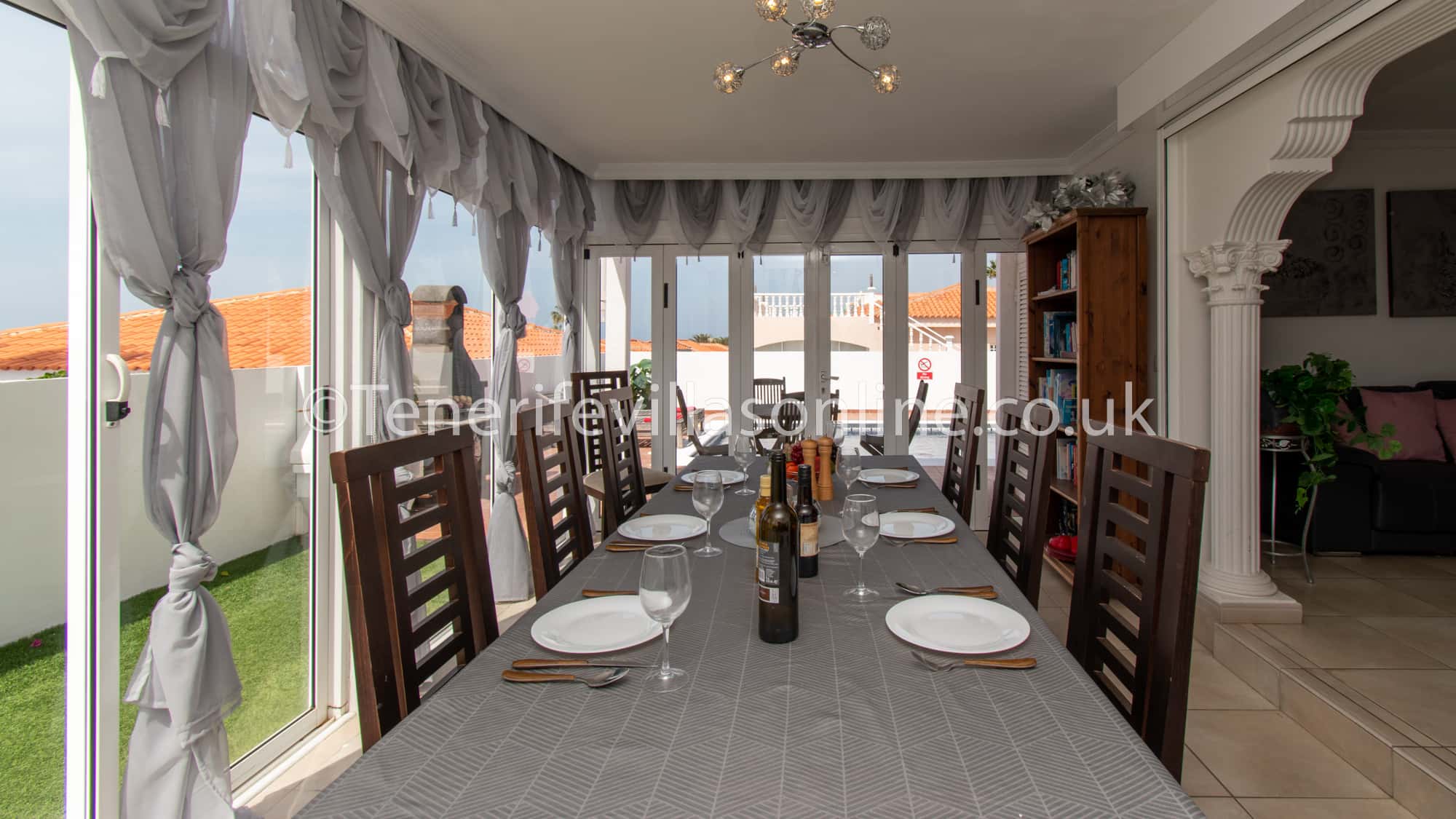 Diner: table and chairs for 8, fan, patio doors to terrace