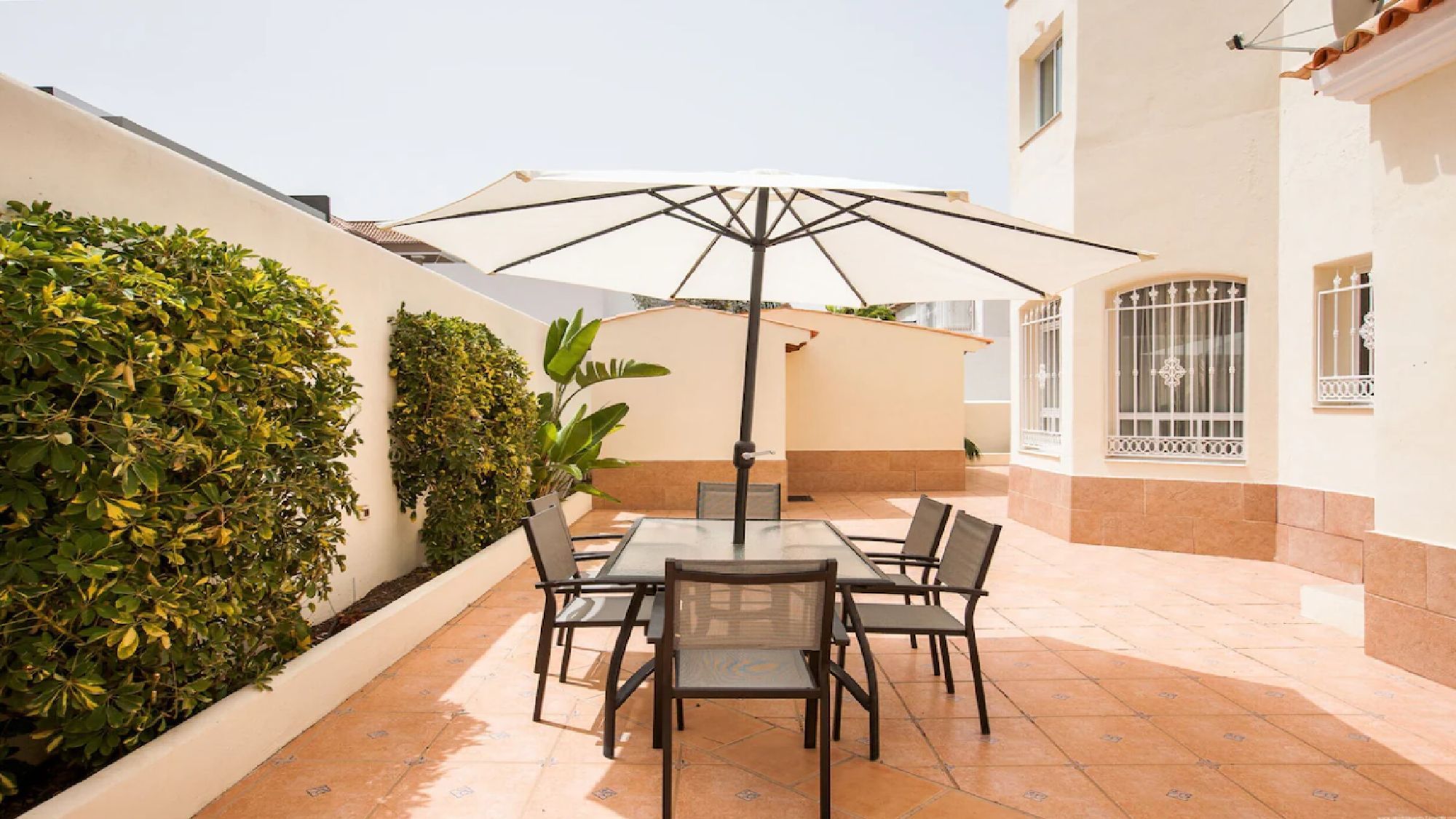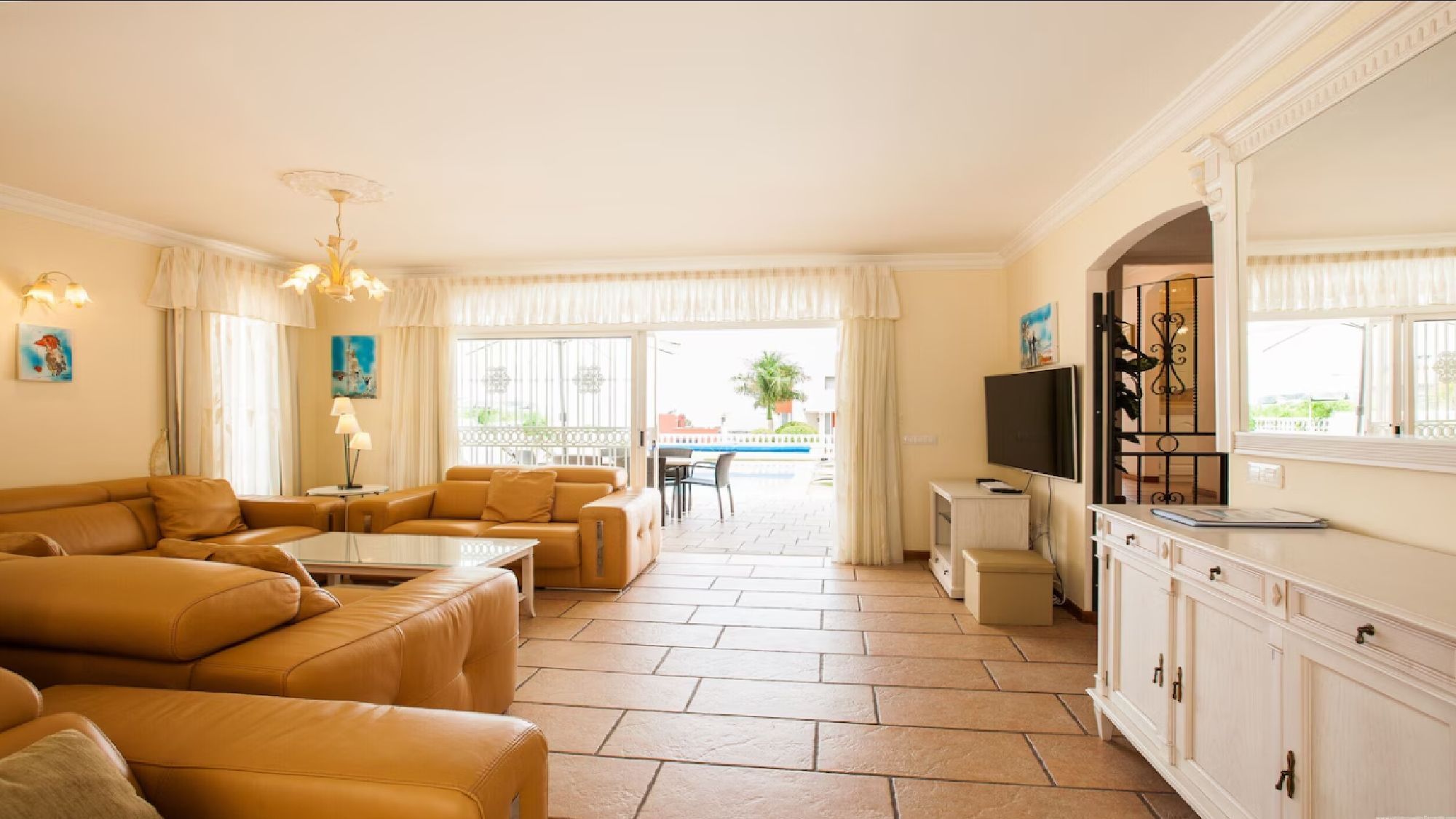 Discover this 4 bedroom 3 bathroom beautiful villa located in the Costa Adeje area in Tenerife. Boasts a spacious interior which features a stylish décor throughout, making it the perfect place to relax, unwind and enjoy a memorable holiday. In the large living area, plush sofas invite you to recline in comfort in front of the 40 inch TV, also this room includes an adjacent dining area. A fully equipped kitchen offers everything you need to create delicious meals.