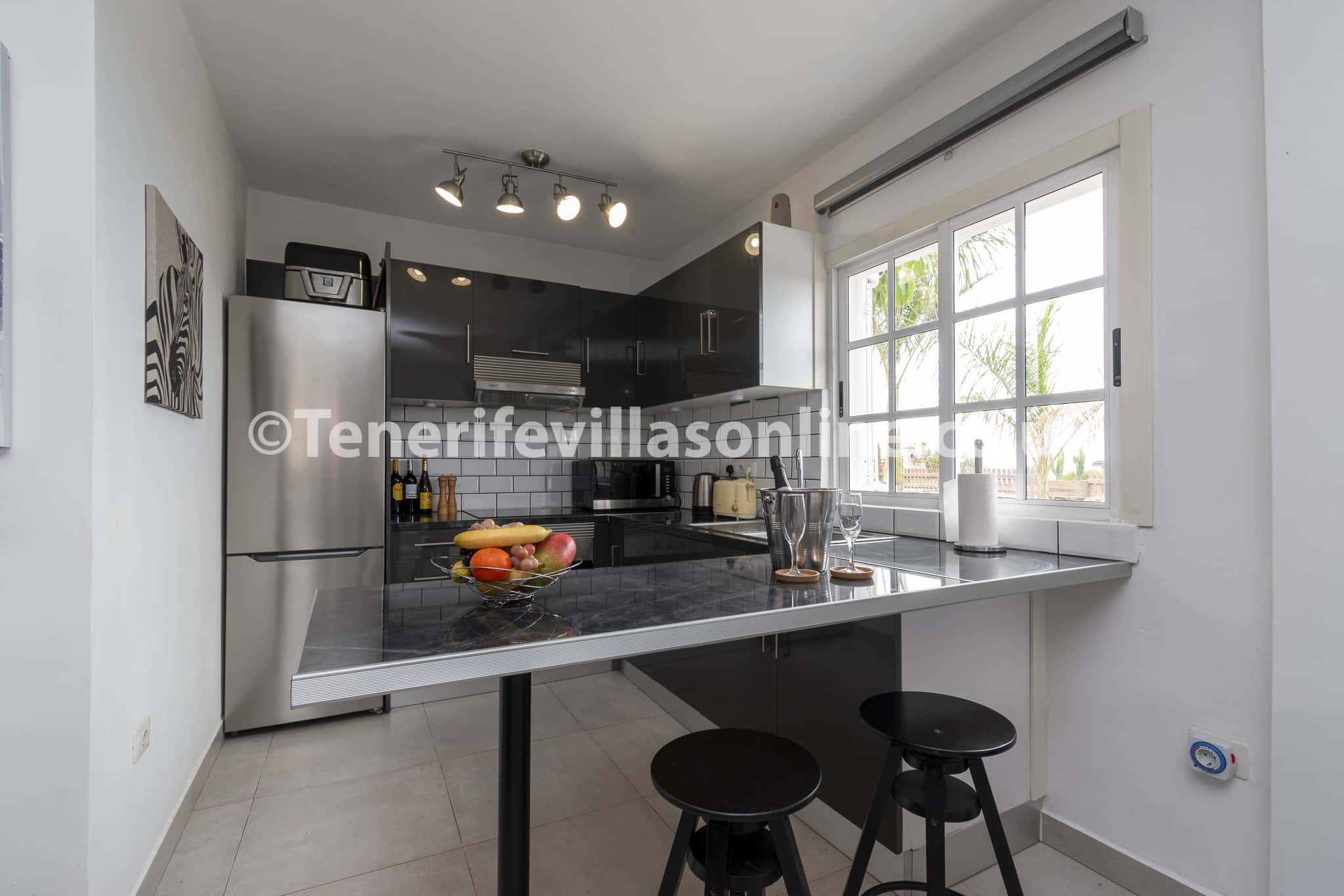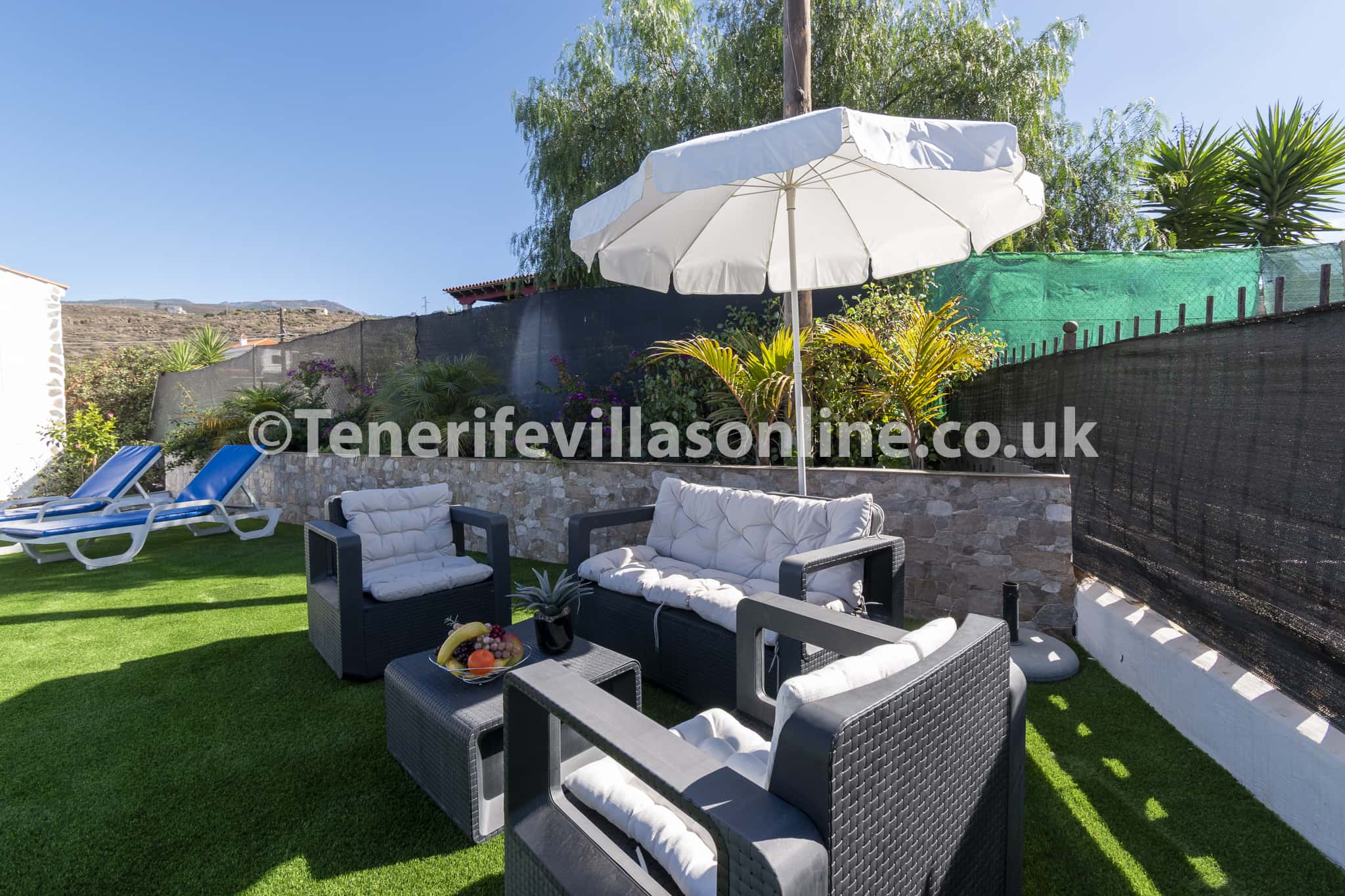 Located in the charming hillside area of Taucho, only a 10 minute drive from the Adeje town. This is the alternative side of Tenerife, sheer peacefulness and endless views down to the coast, the world is certainly a happy place in these surroundings. Ideal for walkers, cyclists, couples and small families! Or any travellers looking for a more peaceful and relaxing vibe. There are some beautiful mountain side walks directly outside the grounds and many different picturesque paths to choose from. Situated approx 9km up from the coast, the beach is a 15 minute drive from the villa and amenities such as large supermarkets, shops, bars and restaurants are a 10 minute drive away. There are some local Canarian bars/restaurants and smaller supermarkets within a shorter distance, however car hire is required.