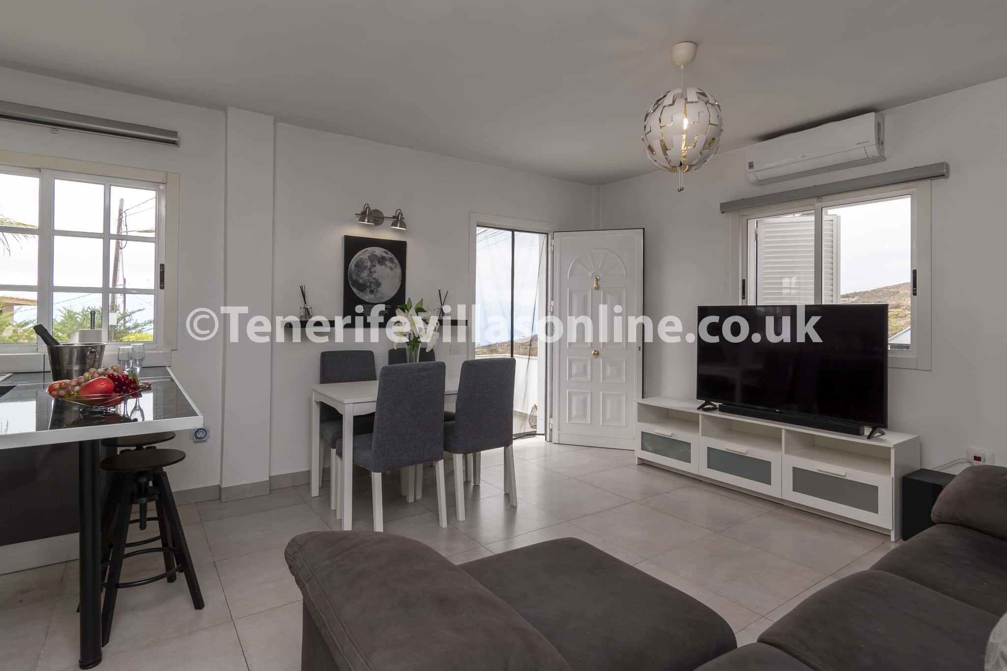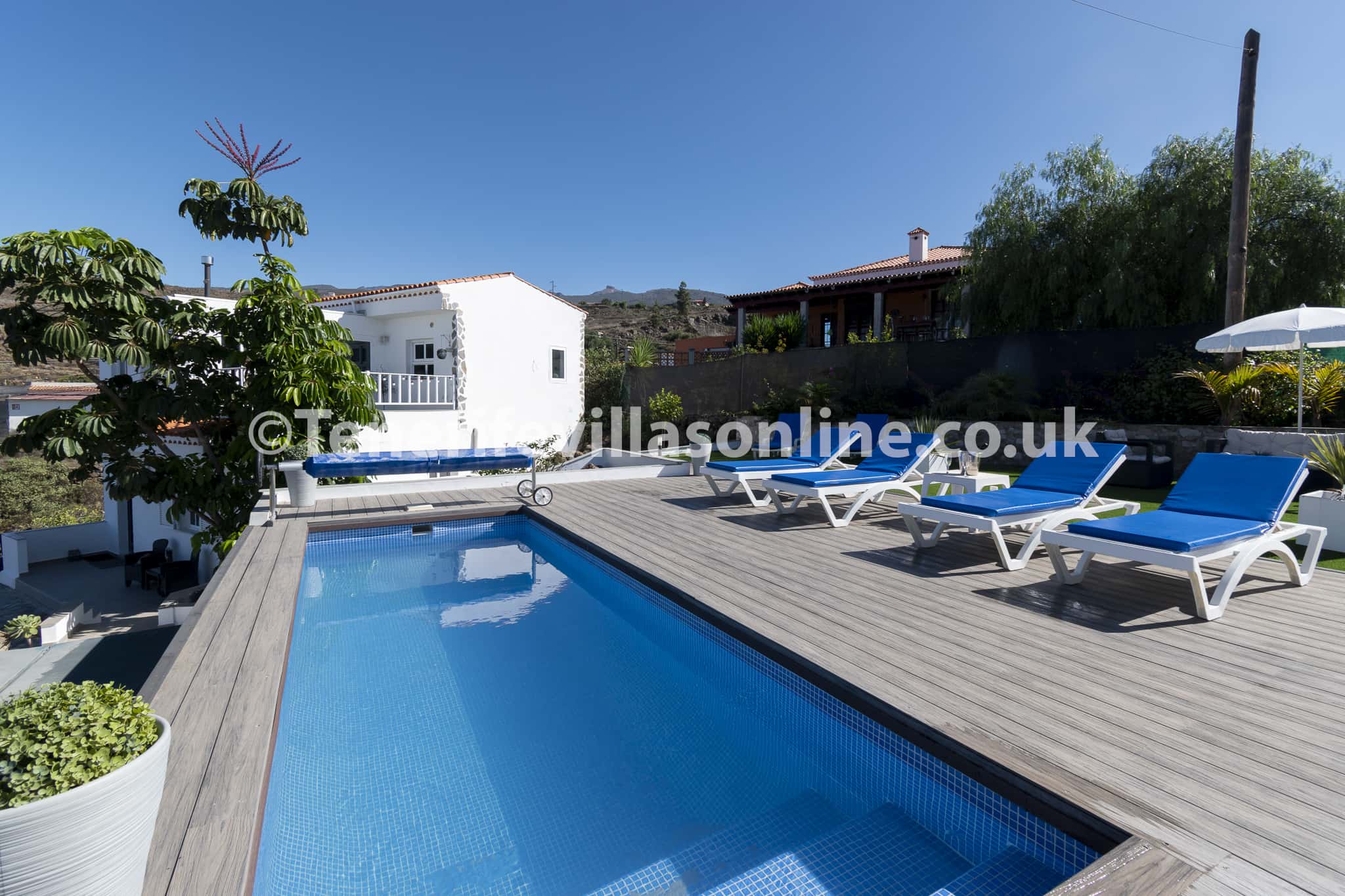 Set within beautiful Canarian gardens and surrounded by breath-taking hillside views, the spacious terrace will make you appreciate outdoor living. Designed for pure relaxation, here you can enjoy refreshing swims in the heated pool and sunbathe pool-side on a sun lounger and soak up the sunshine. The pool terrace also includes parasols and has been upgraded with decking and artificial grass. Dine alfresco in the outdoor dining area with BBQ, perfect for the whole group to gather and host memorable dinners under the stars. A private driveway with parking for two cars is also included for added convenience.