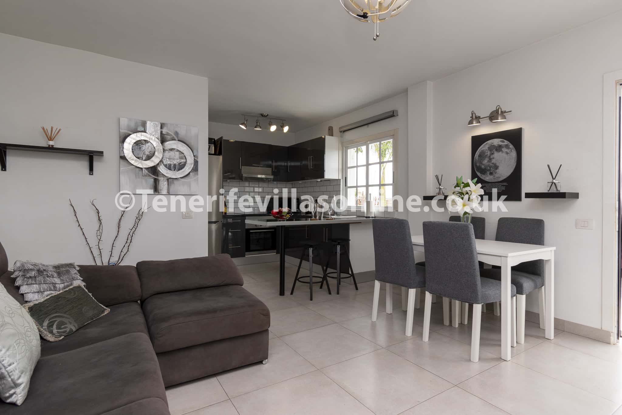 Step inside the fully equipped accommodation, set across two levels, featuring a modern and stylish décor throughout. The open plan living space holds a cosy L shaped sofa with TV, a dining area and fully equipped modern kitchen with breakfast bar. Two comfortable bedrooms and a family bathroom sit conveniently just off the main living area. This home boasts a welcoming atmosphere and also includes air conditioning and electric heaters ensuring all year round comfort.