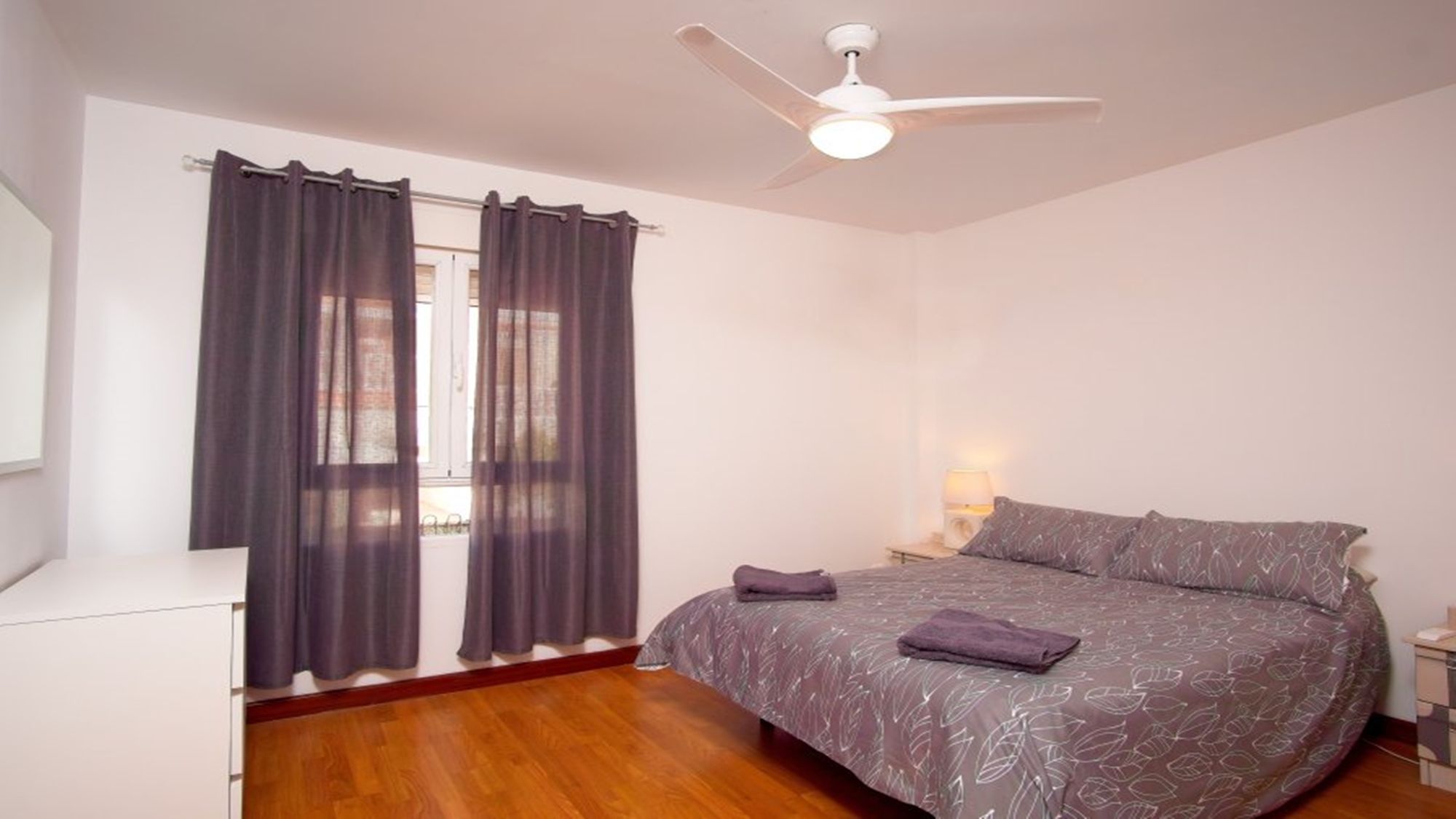Bedroom 2: double bed, ceiling fan