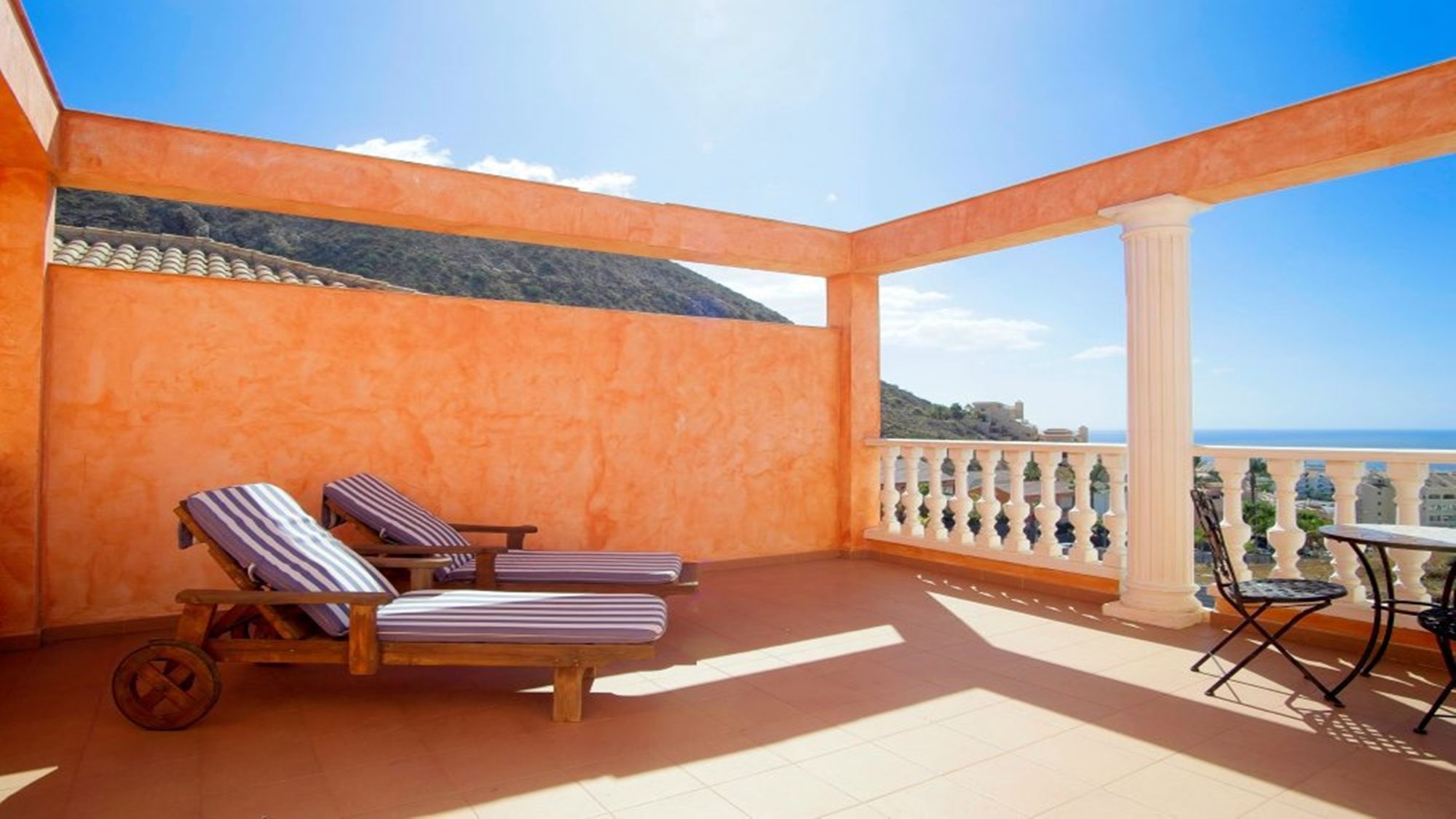 In total there are 3 comfortable bedrooms and the villa can hold a 7th guest on the single sofa bed. The villa also boasts a roof terrace with sun loungers and a set of tables and chairs. From its elevated position, the roof terrace boasts excellent views across the resort and out to sea.