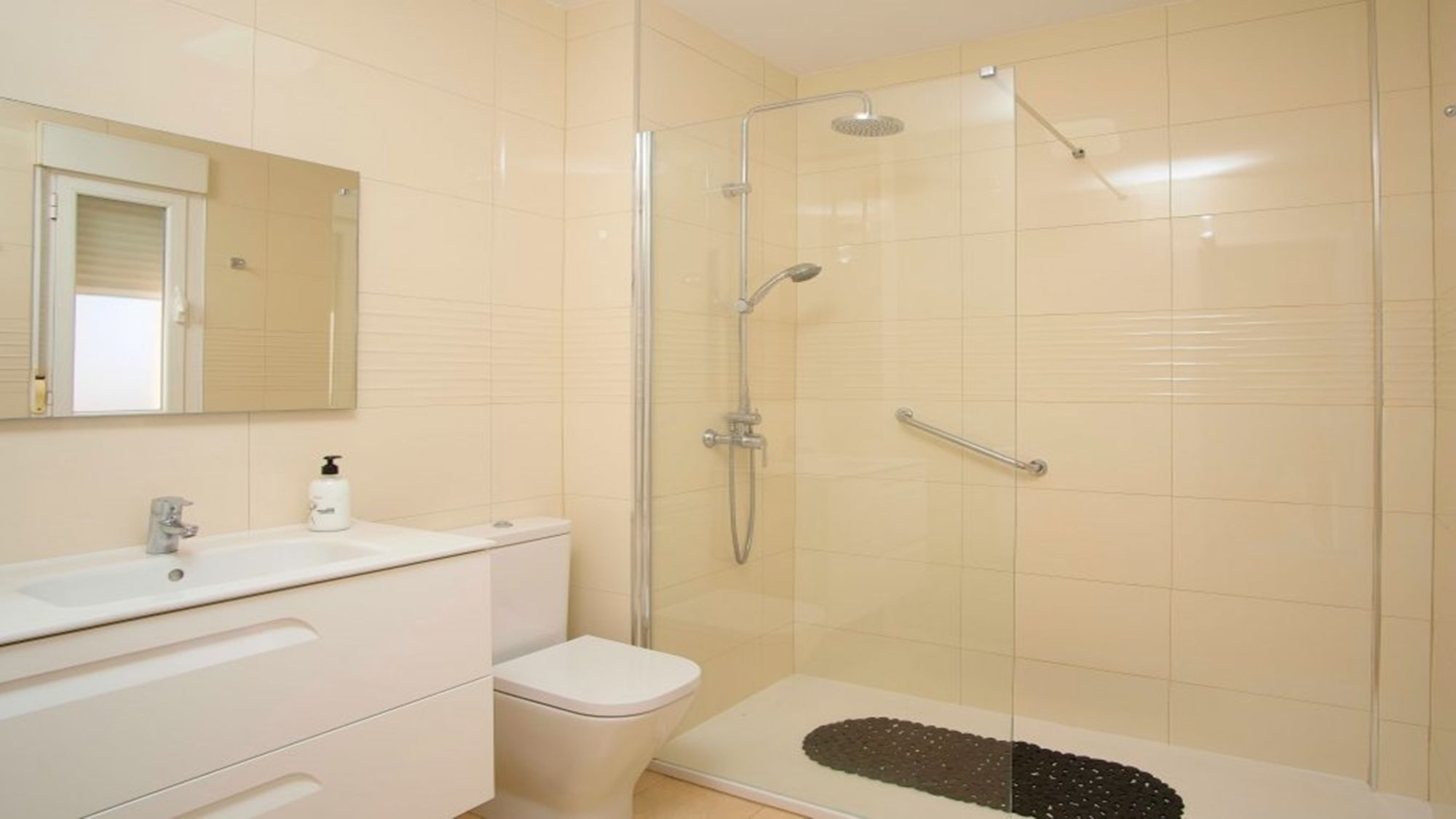 Bathroom: toilet, sink, walk in shower
