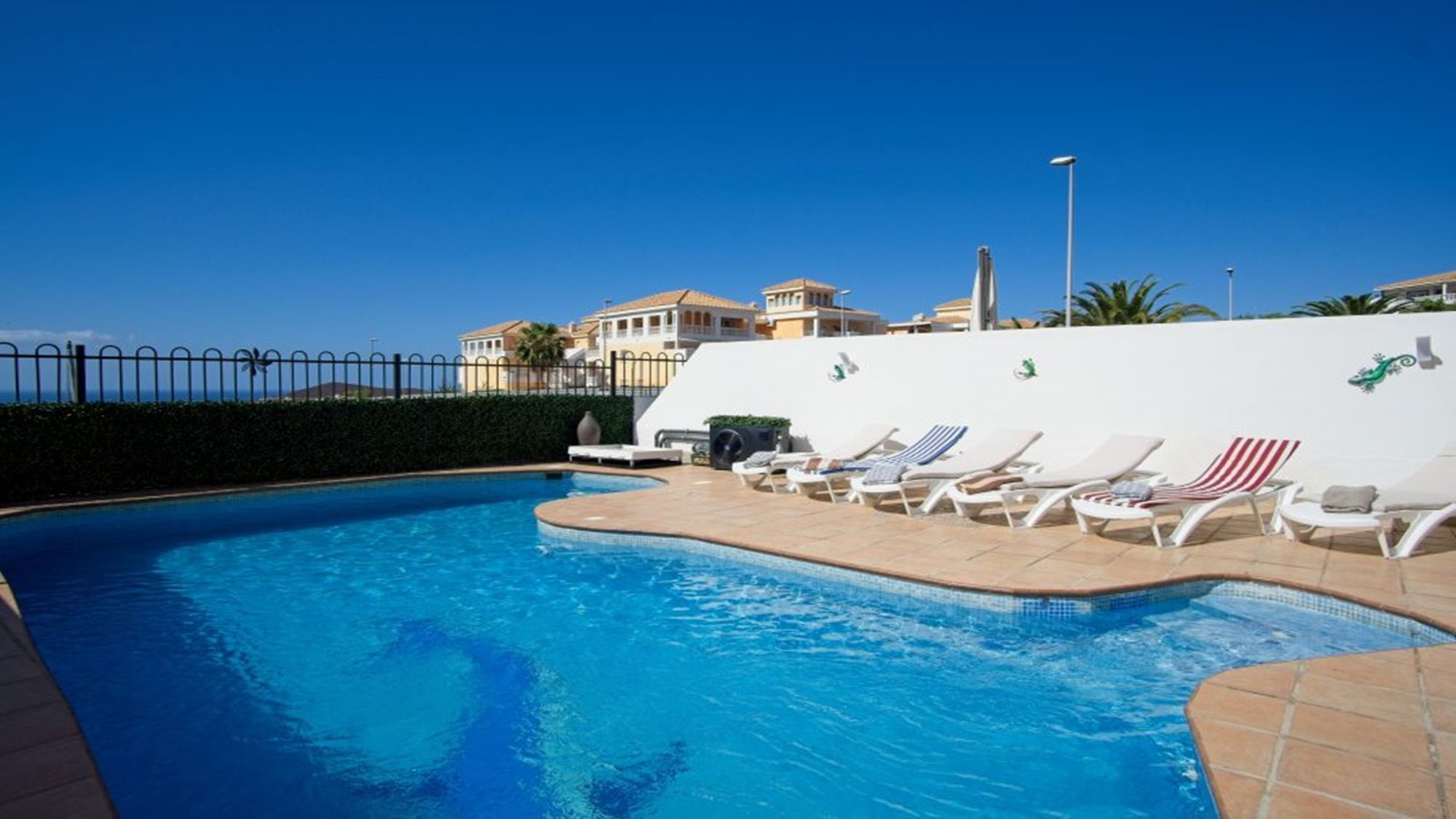 This villa is located in Los Cristianos. There are a selection of bars, restaurants, supermarkets, shops, banks etc within a 10 minute walk. Los Cristianos has a beautiful safe and clean beach, ideal for families with plenty of shops and amenities for entertainment. Tenerife south airport is only 15 minutes from the accommodation. Las Americas is a 5 minute drive away.