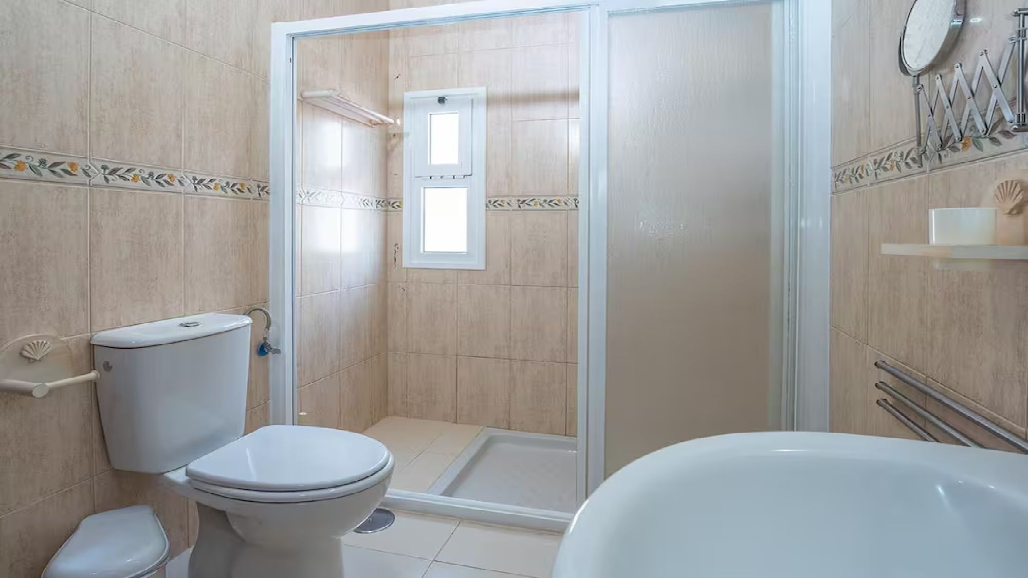 En suite (bedroom 1): toilet, sink, shower cubicle