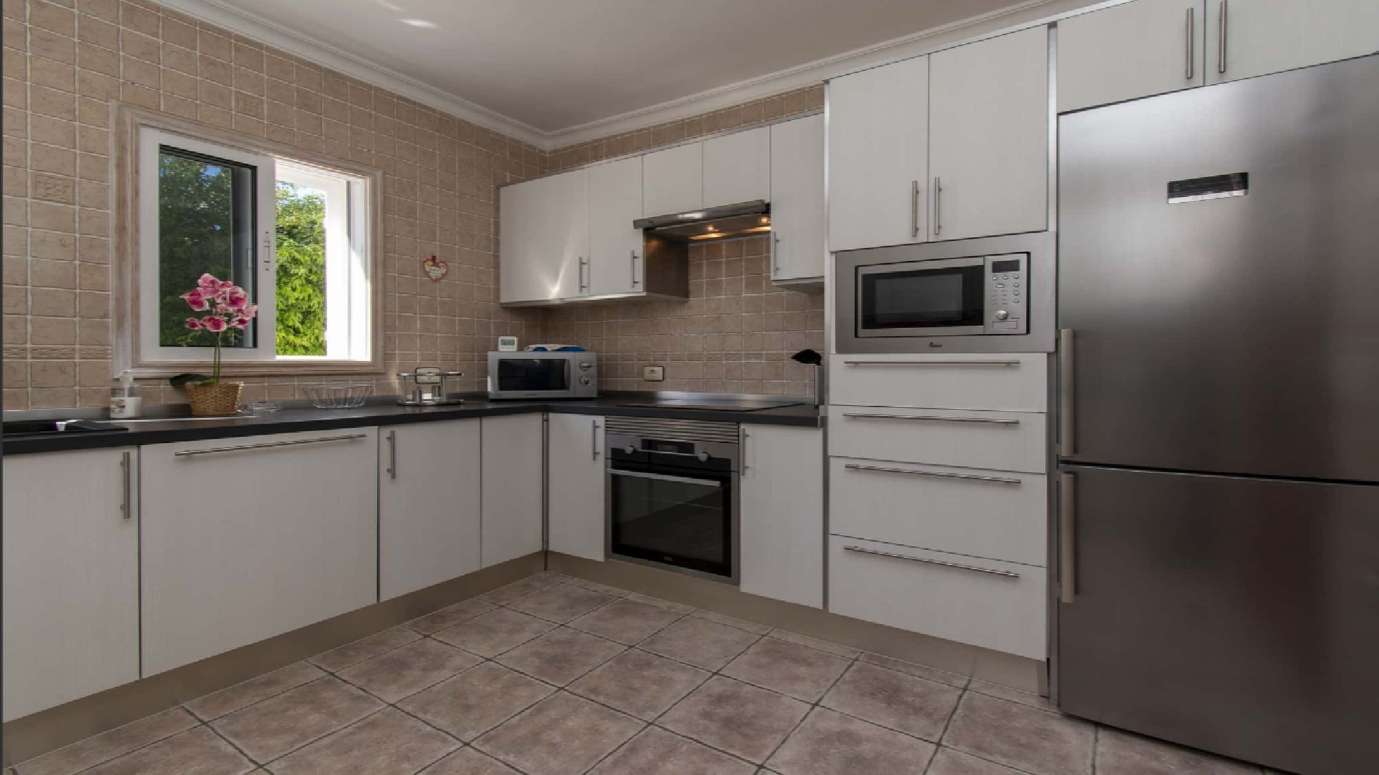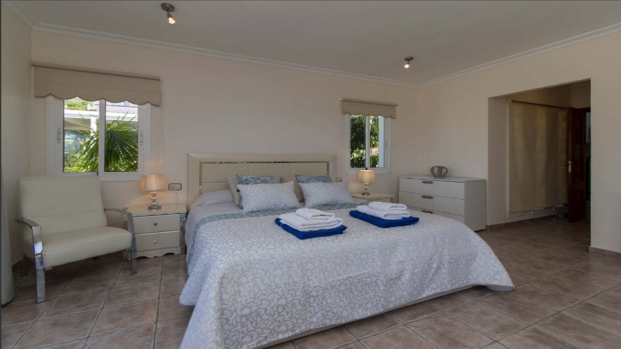 The interior boasts a fully equipped state-of-the-art kitchen, ideal for preparing meals to enjoy indoors or alfresco. The open plan living/dining area is bright and welcoming, includes a large TV and modern furnishings that create a blend of comfort and style. All 4 bedrooms are thoughtfully designed and complete with fitted wardrobes.
