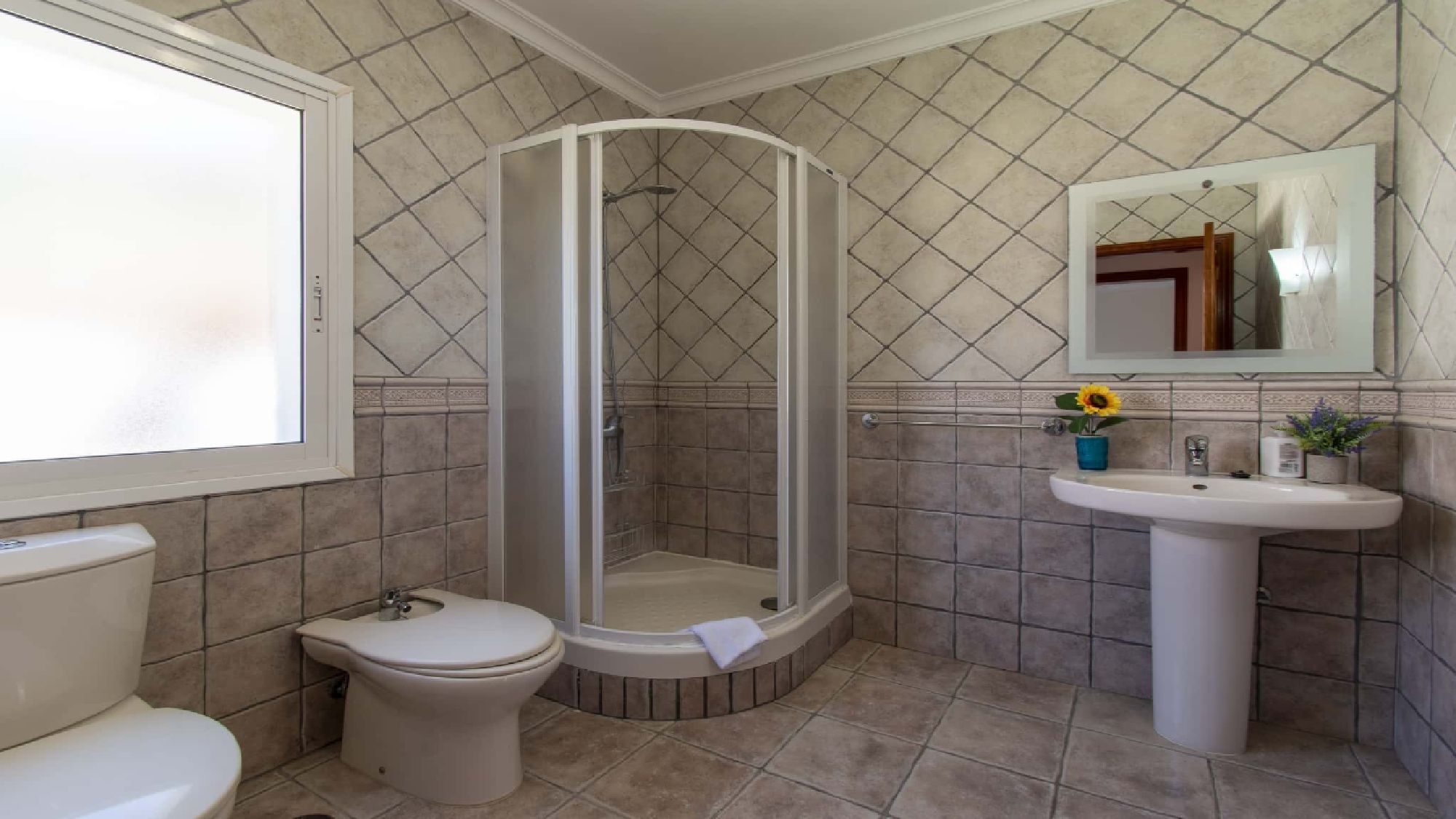 Bathroom 3: toilet, sink, walk in shower