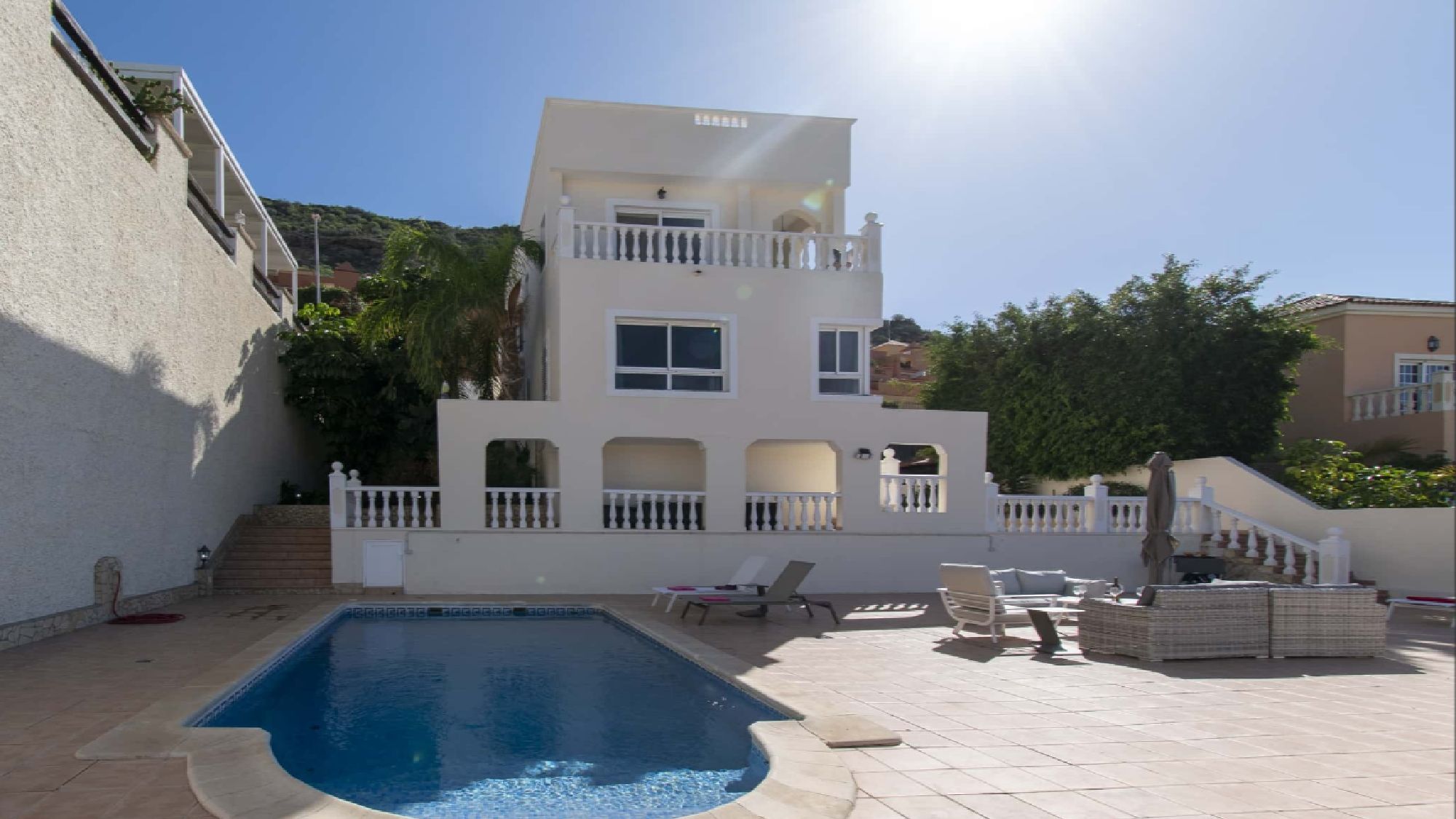 This villa is located in the very popular beautiful area of Costa Adeje, only 1.5 km from the huge Gran Sur shopping centre. The Gran Sur shopping centre (centro commercial) has many shops, a large supermarket, bars, restaurants, banks, cinema and plenty of other amenities. The nearest beaches are Playa Del Duque, Fanabe and Puerto Colon all within 2.5 – 3 km of the property. Here you will find various activities available with numerous bars & restaurants, shops and arcades and plenty of other activities for you to explore. This is one of the most favoured destination for holiday makers in Tenerife. Siam Water Park is approx 3.5 km from the villa.