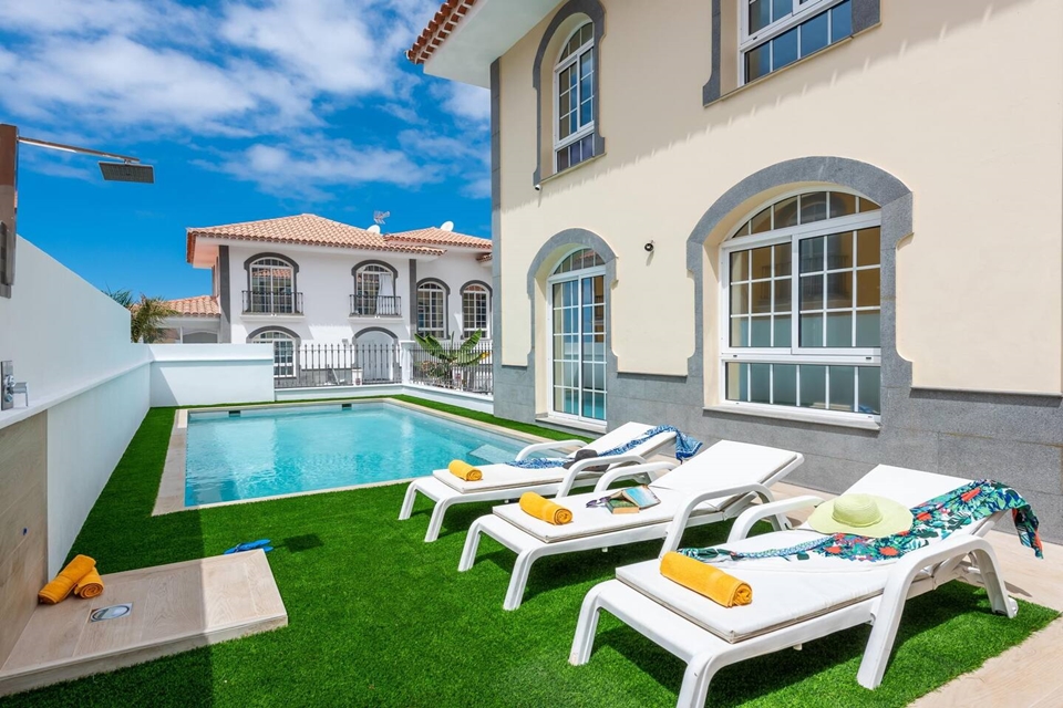 This 3 bedroom villa is located in very popular beautiful area of Costa Adeje, only 800 meters from the huge Gran Sur shopping centre. There are two cafe bars and one supermarket just 200 meters from the villa. Bus services and taxis are available on the street on the corner where the cafe and supermarkets are. The Gran Sur shopping centre (centro commercial) has many shops, a large supermarket, bars, restaurants, banks, cinema and plenty of other amenities. The nearest beaches are Playa Del Duque, Fanabe and Puerto Colon all within 1.5 – 2 km of the property. Here you will find various activities available with numerous bars & restaurants, shops and arcades and plenty of other activities for you to explore. This is one of the most favoured destination for holiday makers in Tenerife. Siam Water Park is approx 2.5 km from the villa.