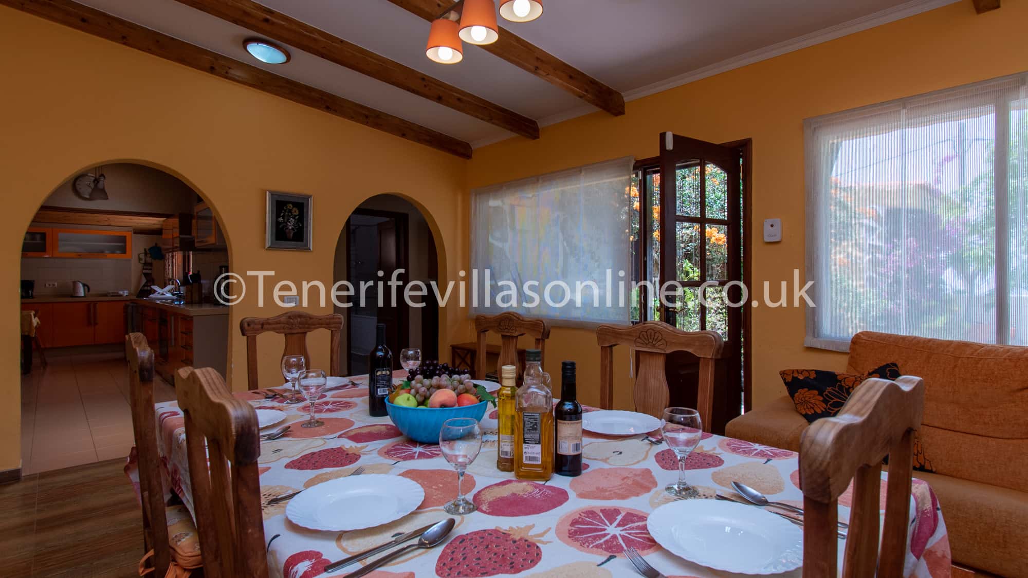 Diner: table and chairs for 6, patio doors to pool terrace, 3 seater sofa, 46 inch smart flat screen TV