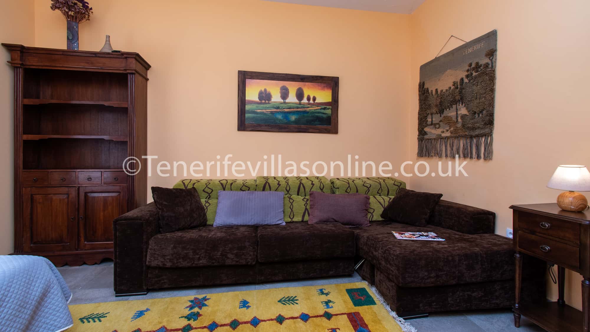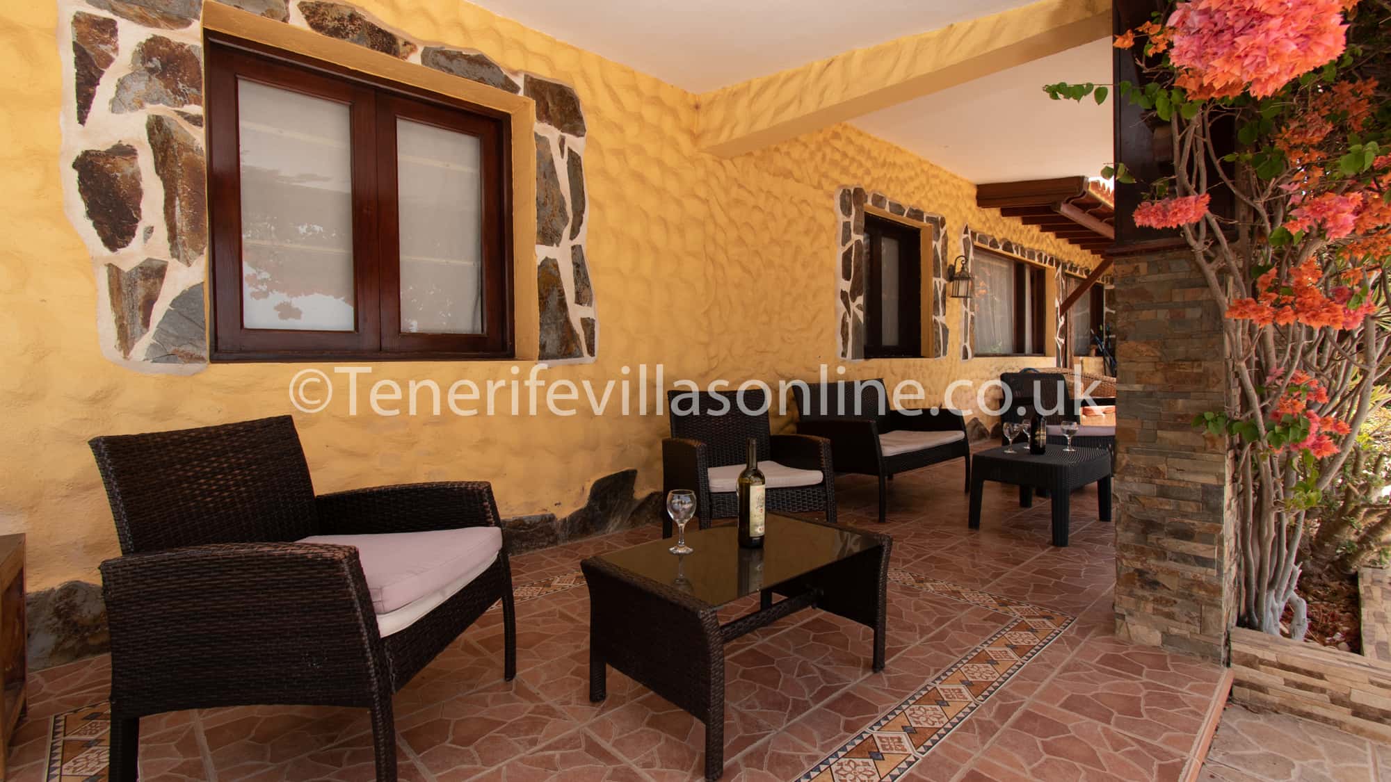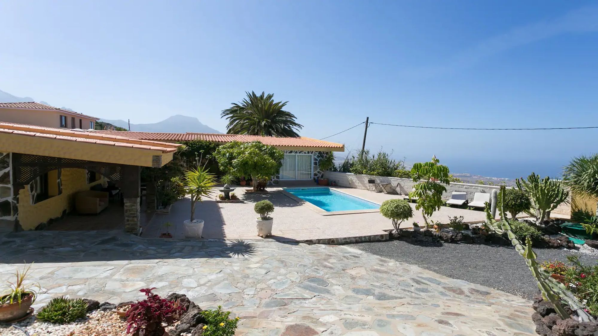 This unique property is situated in a hillside location but is only 1.5 km from the town of Adeje and 4-5km from the nearest beach at Costa Adeje. There are local restaurants, bars and large supermarkets etc nearby less than 2 km from the villa. The water parks of Siam park and Aqua land are just 5 km away. Car hire is recommended at this villa.