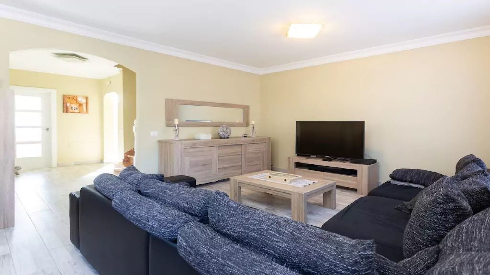 Upon entry to the accommodation, straight away you will notice the modern decor throughout. The living area holds 2 + 3 seater sofas, perfect for unwinding while watching your favorite TV channels and adjacent to this area is a dining table. The separate kitchen includes state of art appliances and is fully equipped to satisfy your culinary desires.