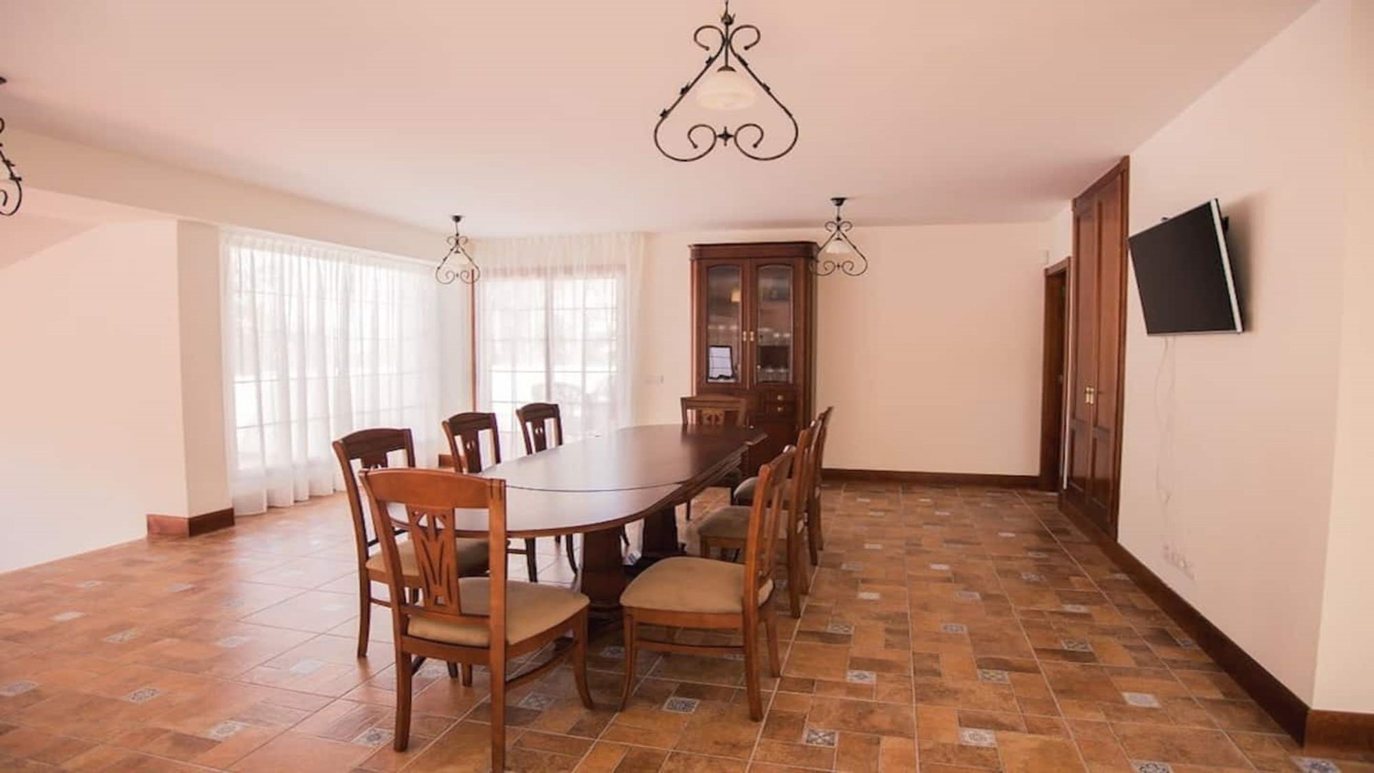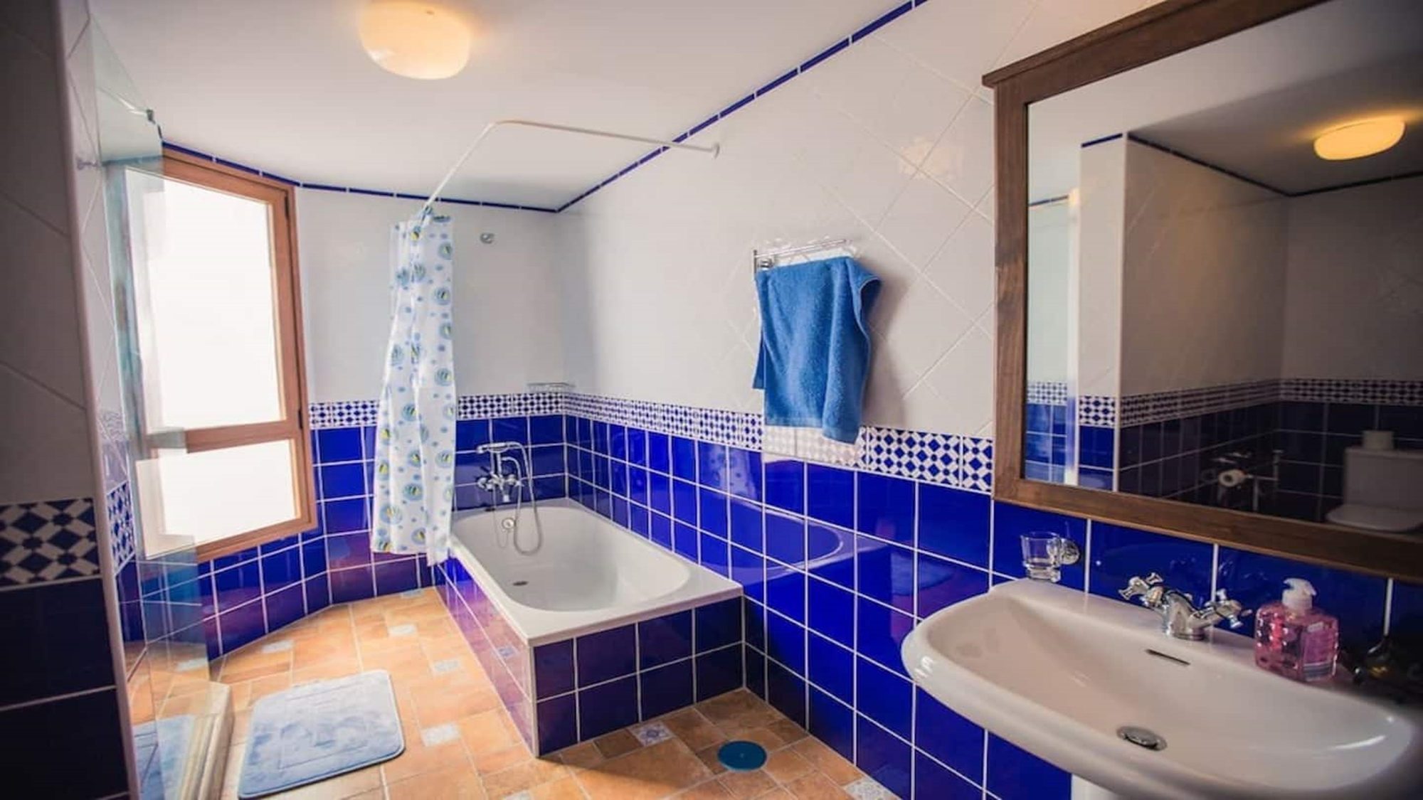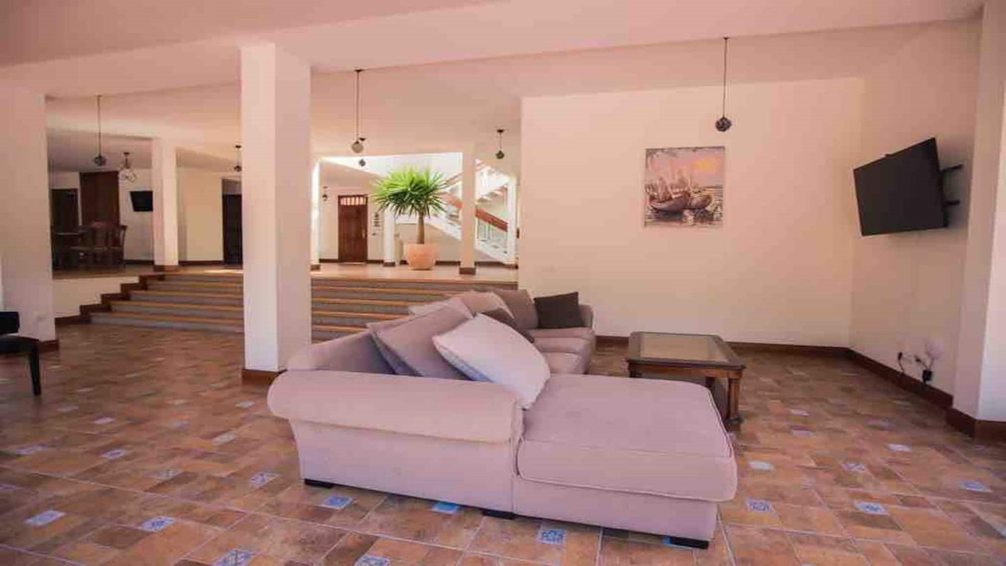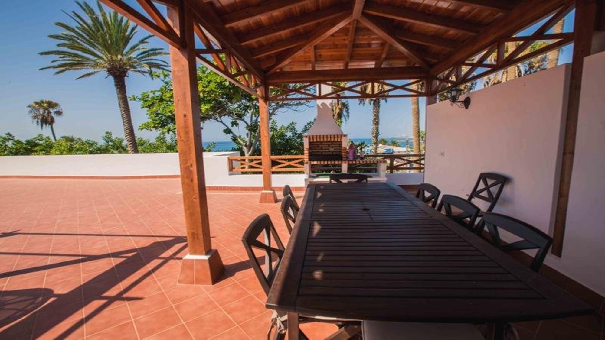 The accommodation is situated on 3 levels, all rooms are very spacious and boast a stylish decor throughout. Dining is available indoors or upstairs on the roof terrace with BBQ, the large kitchen is fully equipped to cook all the delicious meals you wish. Relax with ease and comfort in the lounge area, recline on the sofa in front of flatscreen TV with UK channels available. In total the villa has 6 comfortable bedrooms and 7 bathrooms.