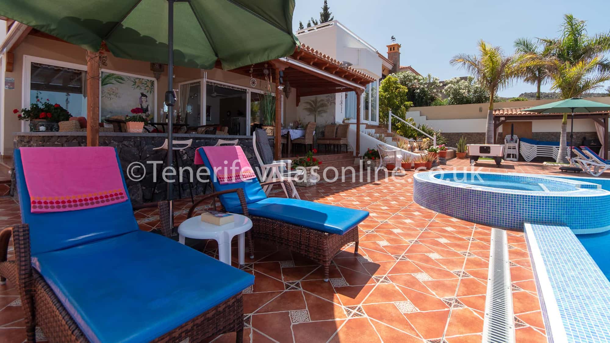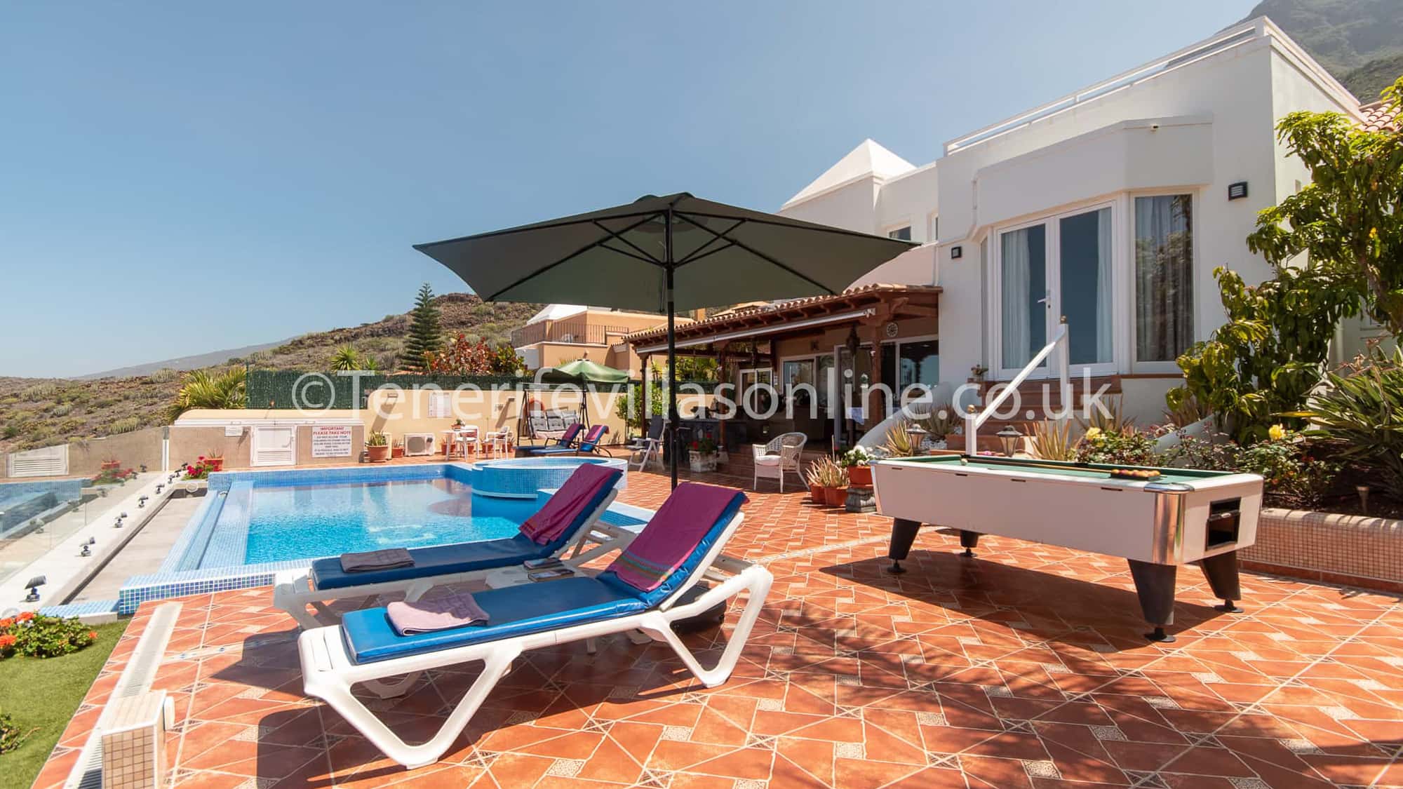 Date of stay: February 2026 Great Villa with lovely views. Heated Pool and Jacuzzi were brilliant with a really good temperature. Arrival instructions were concise and clear with KeyBox easily accessible. All facilities are as described. The TV was great.The A/ C works really well. Nice covered outside seating area and also sun loungers for the pool area. Outside Pool table was nice addition. Closest One supermarket is 2 minutes drive, the SuperDino is 5 minutes drive.Loads of restaurants at Playa Fanabe 10 minutes drive away. Contacted Owner about a couple of small issues and was contacted back immediately and everything sorted straight away ; very impressed. Own car is not essential but makes life really easy. Did a 2hour Dolphin/ Whale watching tour with Royal Delfin at Puerto Colon. Saw loads of dolphins and pilot whales. Did the Cable Car up Mount Teide. You need to book on the official website a few days before.Car parking there can be a problem, so the advice we had was arrive before 11-00 or after 2-00pm. We got there at 2-30 for a 3-20 booked cable car and had no trouble. Siam water park is absolutely amazing but if you can afford it get the fast pass as well. There were some long queues on a few rides otherwise. Overall great holiday in a great Villa.