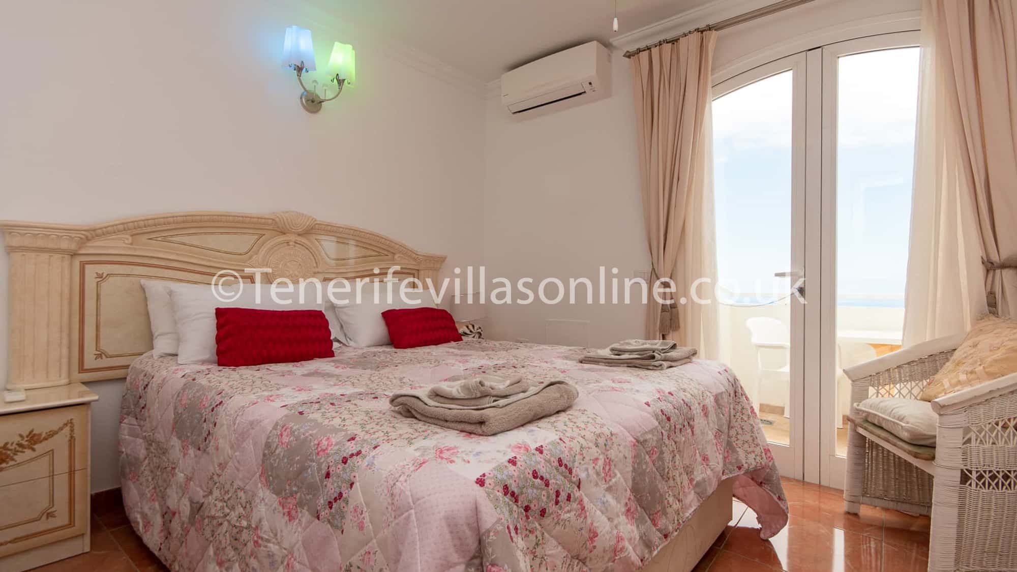 Bedroom 3: double bed, fitted wardrobes, patio doors to sun terrace, ceiling fan, air conditioning