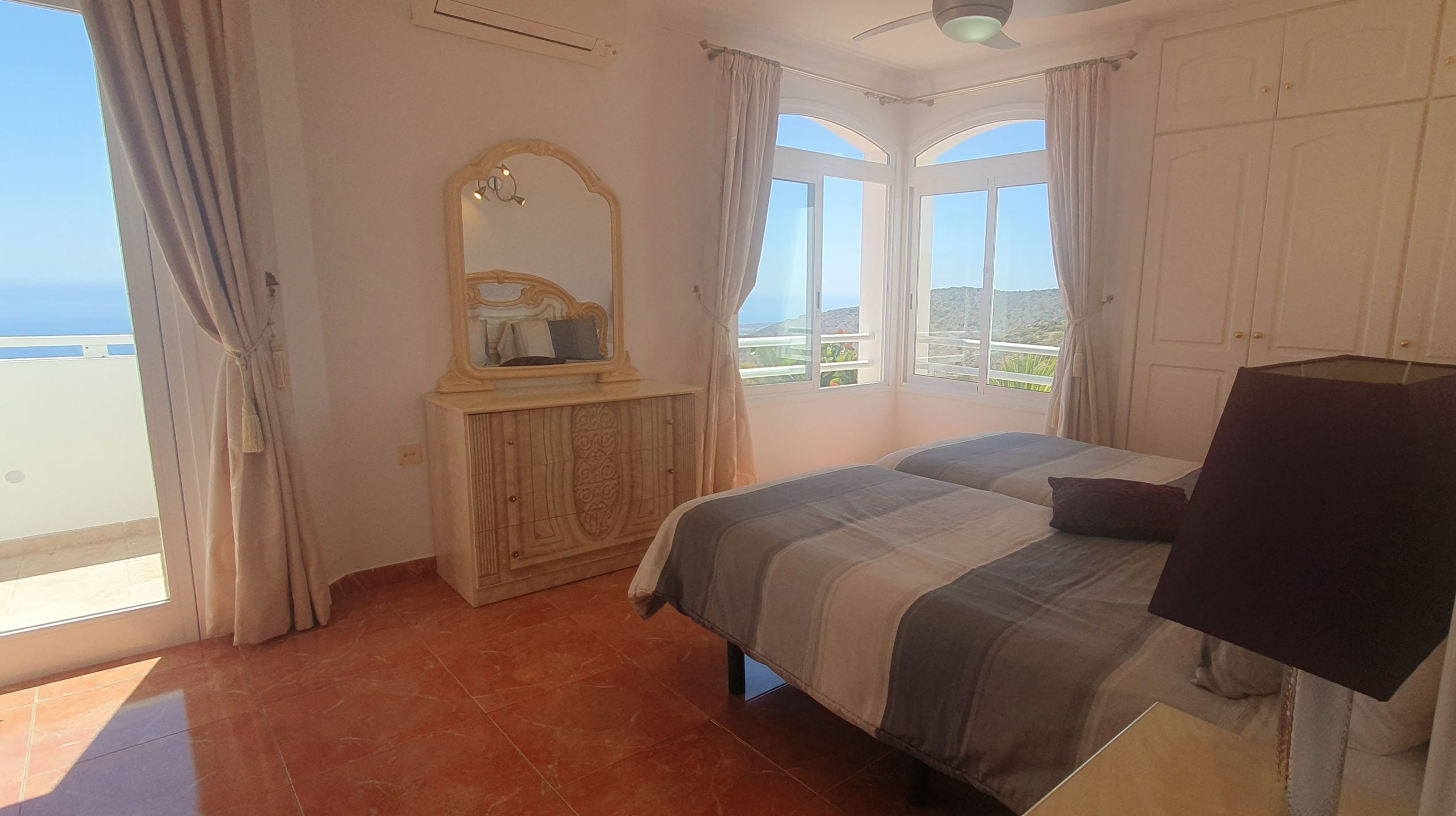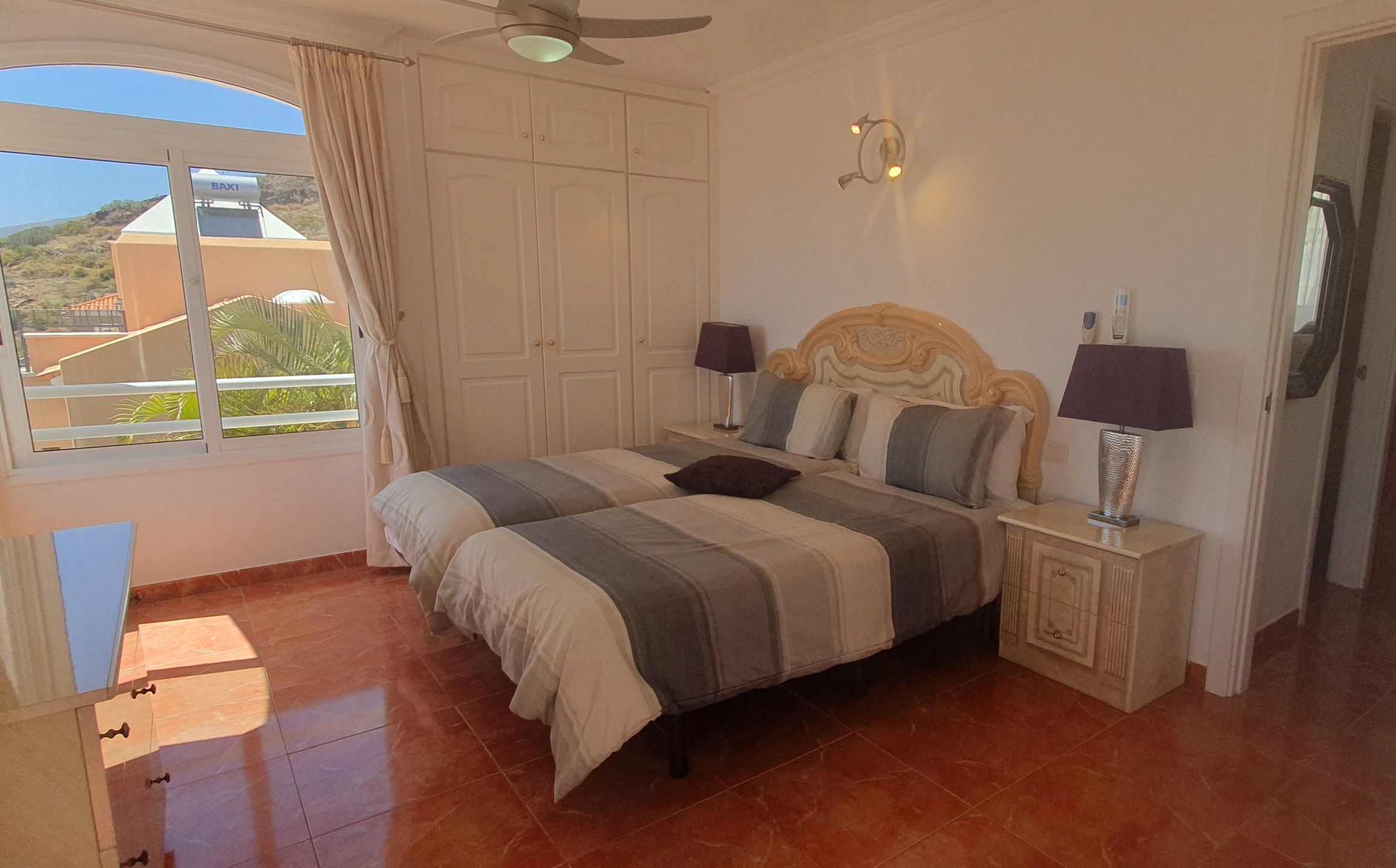 Bedroom 4: single beds (x2), fitted wardrobes, patio doors to sun terrace, ceiling fan, air conditioning